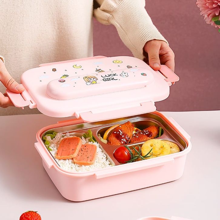Panda Home Kotak Bekal Anak 3 Sekat Stainless Steel / Lunch Box Kids Set Free Sendok Sumpit Dan Stiker