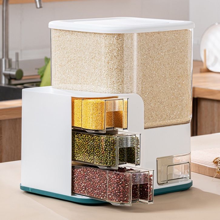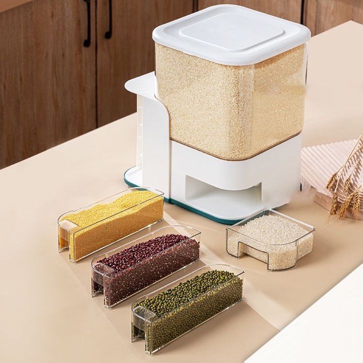 【ZEN】Dispenser Beras Transparan 12.5KG 10KG dengan 3PCS Wadah Bumbu