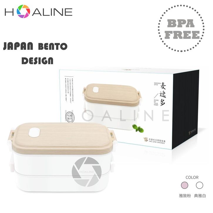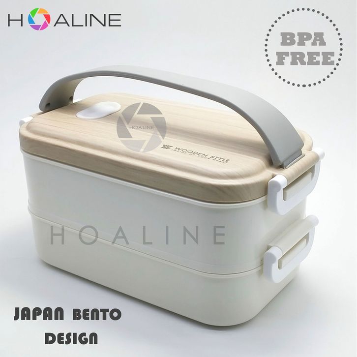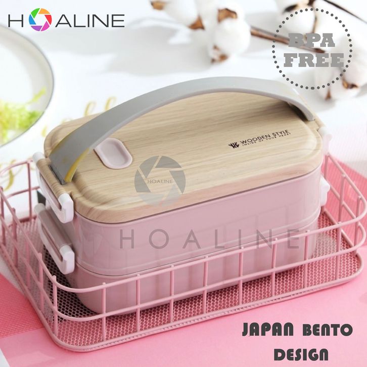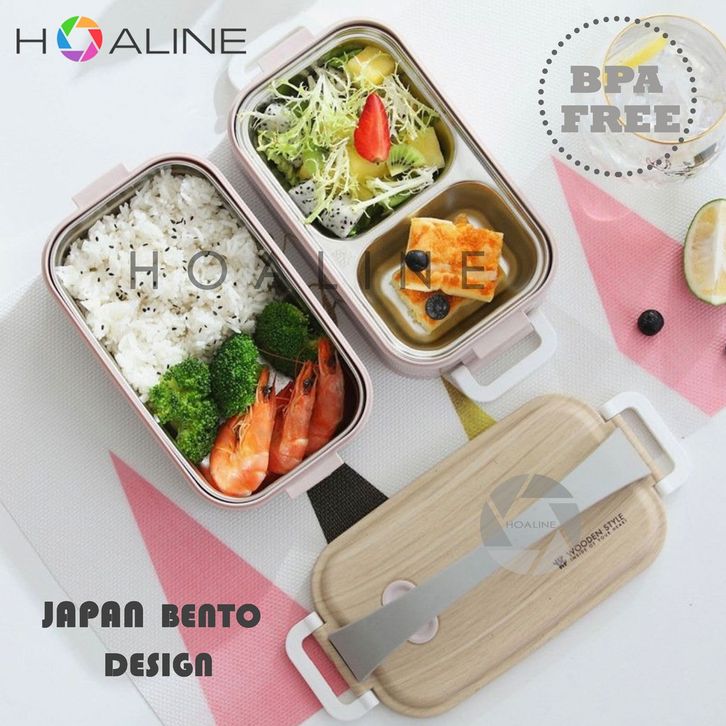 READY Bento lunchbox stackable stainless steel 304 M0Del kayu Jepang HL 006 lunch box / rantang kedap udara kotak 2 tin
