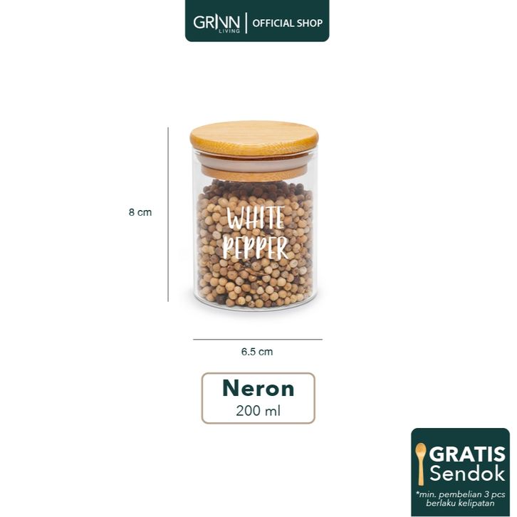 GRINN LIVING SET PAKET Neron jar 200 ml / Toples Kaca Tutup Kayu / Tempat Penyimpanan Bumbu Dapur