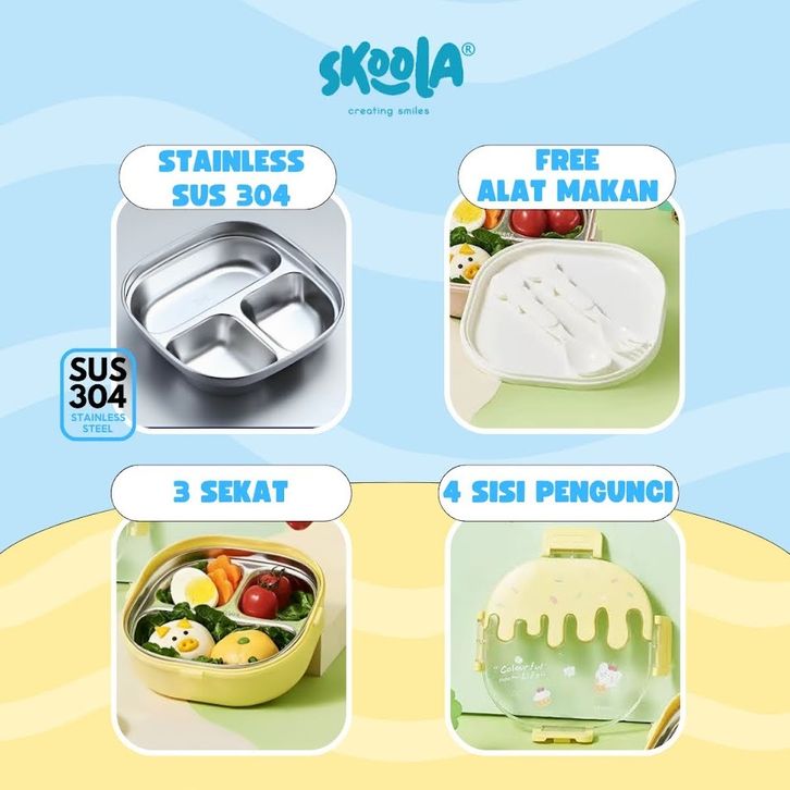Skoola Kotak Bekal Lunch Box Tempat Makan Stainless Steel Anak Perempuan Lucu Ice Cream - Creamy
