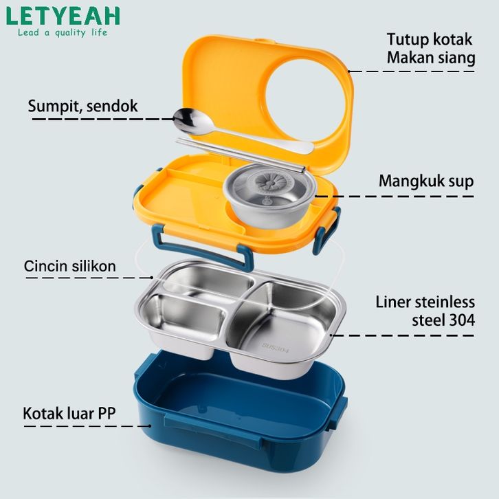 【Live exclusive】FREE botol LetYeah kotak makan stainless steel 304 degan mangkuk sup lunch box set 1200ml dan tas bekal