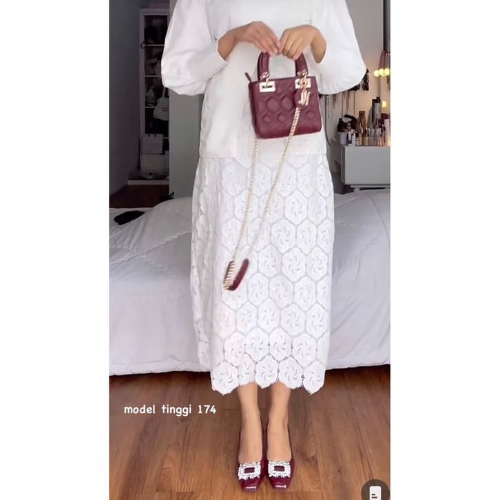 Nola Skirt Rok Span Lace Skirt Rok Rajut Vintage Bawahan Wanita Kekinian