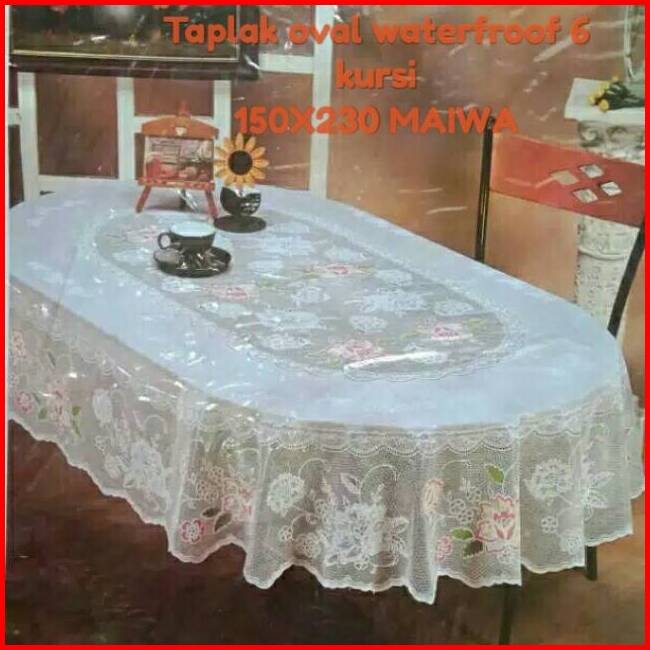 Taplak Meja Makan Oval Waterfroof 6-8 Kursi Import Maiwa