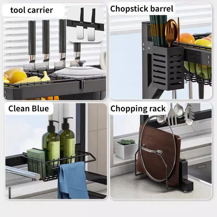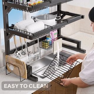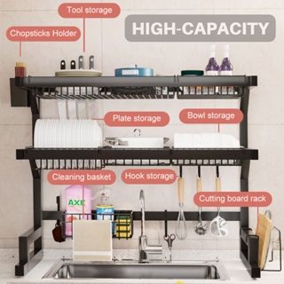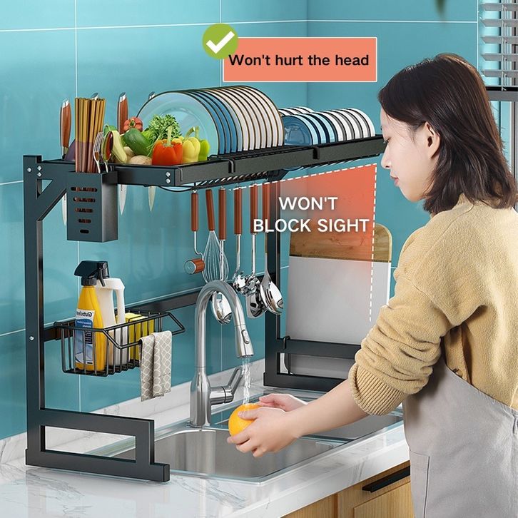 Rak Piring Wastafel Stainless Steel Hitam Peralatan Dapur Kokoh Kuat Rak Cuci Piring Dapur Rak Piring Minimalis Modern