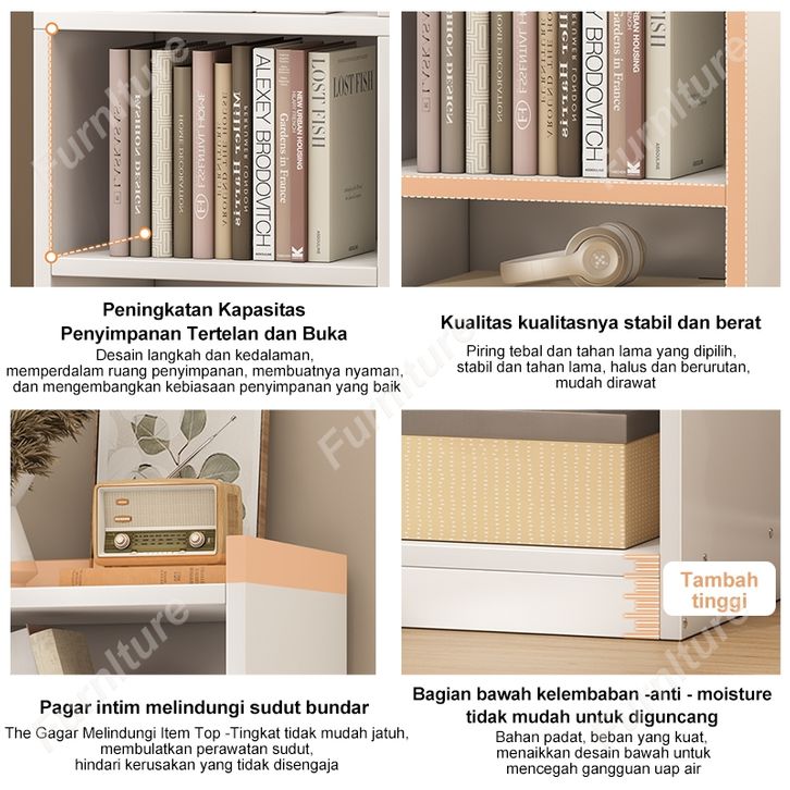 RAK BUKU KAYU 6 SUSUN RAK BUKU PORTABLE LEMARI DISPLAY LEMARI SUSUN RAK BUKU PENYIMPANAN MINIMALIS MURAH AESTHETIC