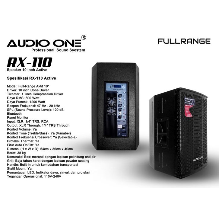 Speaker Aktif Pasif Single Fullrange Audio One RX Series 110 Inch Aktif (1 Set ) Orignal Audio One