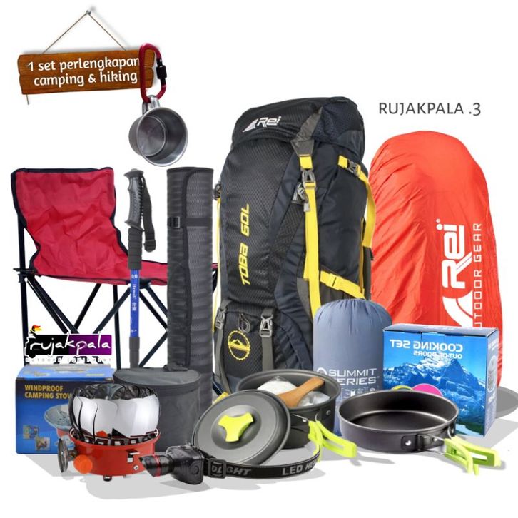 paket mendaki / carrier arei toba 60L / paket hemat perlengkapan mendaki / paket hiking / set perlengkapan camping