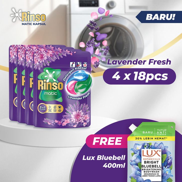 Beli 4 Rinso Kapsul Lavender Fresh 189g GRATIS Lux Bright Bluebell Niacinamide Body Wash 400ml