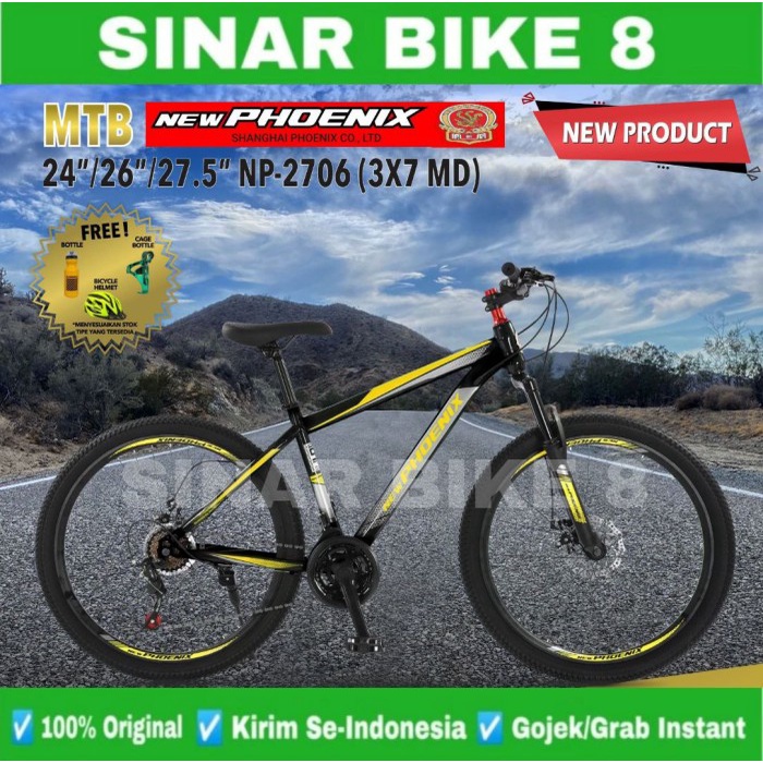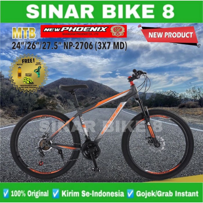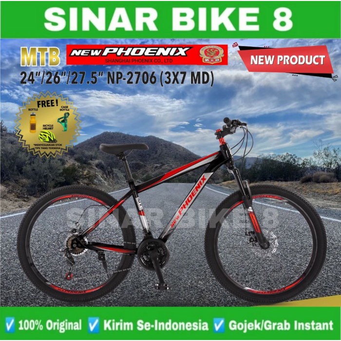 SEPEDA GUNUNG MTB PHOENIX 2706 NEW REM CAKRAM UKURAN 24",26" DAN 27,5 INCH