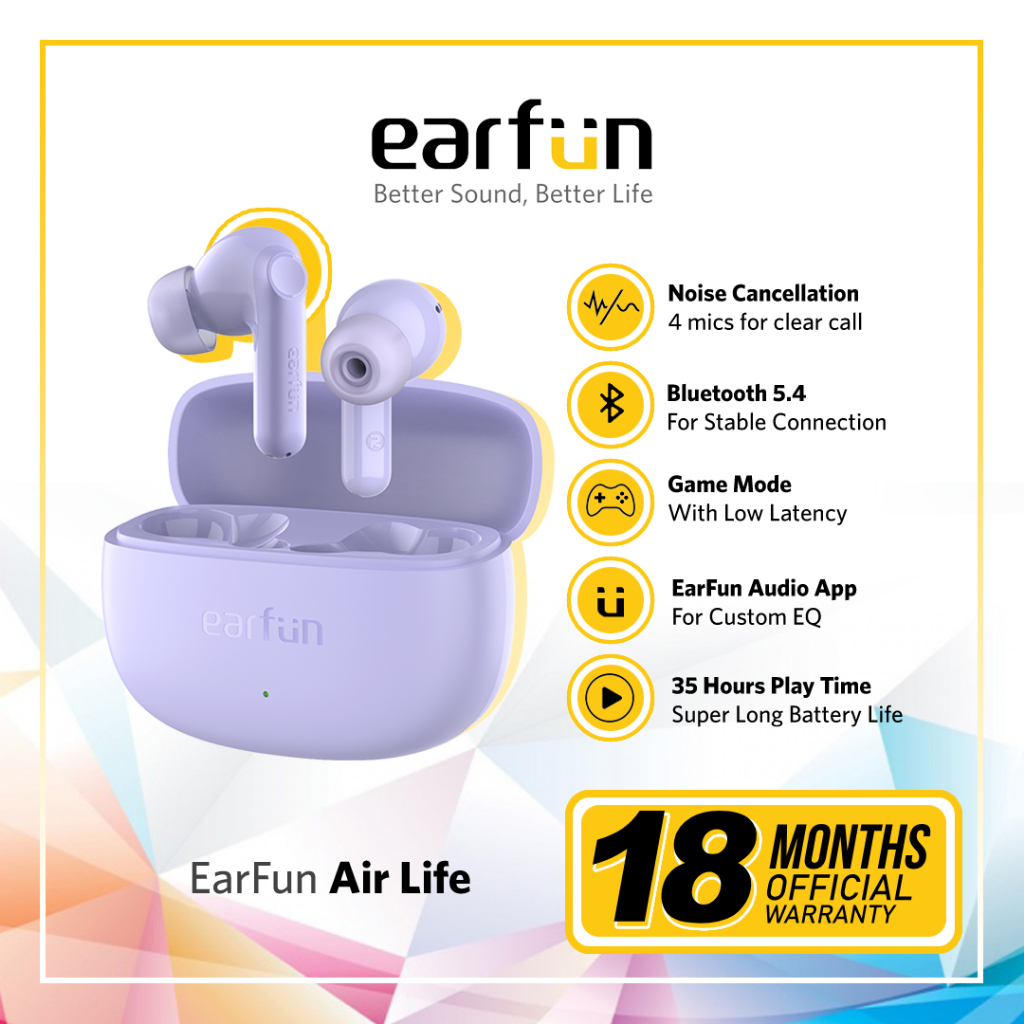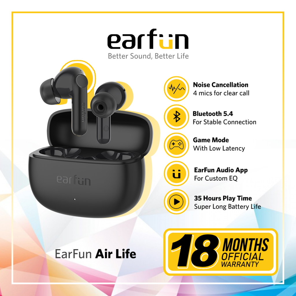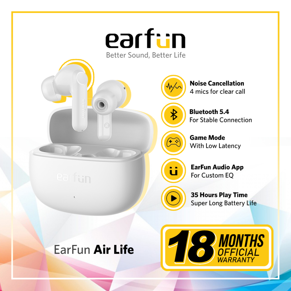 EarFun Air Life 4 Mic AI ENC TWS with BT 5.4 12mm Driver Game Mode & Audio App