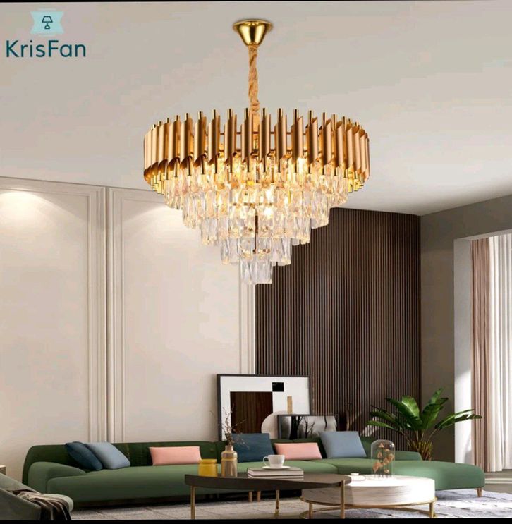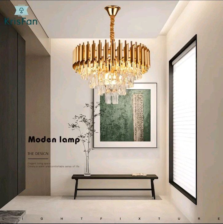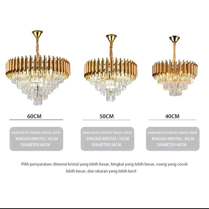Lampu kristal mewah ruang tamu LED 3 warna modern minimalis ruang makan kamar tidur Indoor Lighting chandeliers Baja