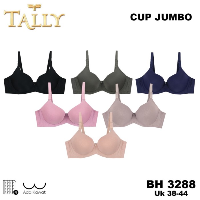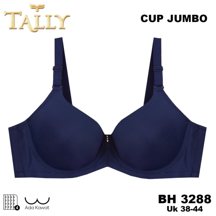 TALLY BRA KAWAT BAHAN LICIN BUSA TIPIS CUP D/E KAIT 4 JUMBO BH 3288 - HITAM, 46