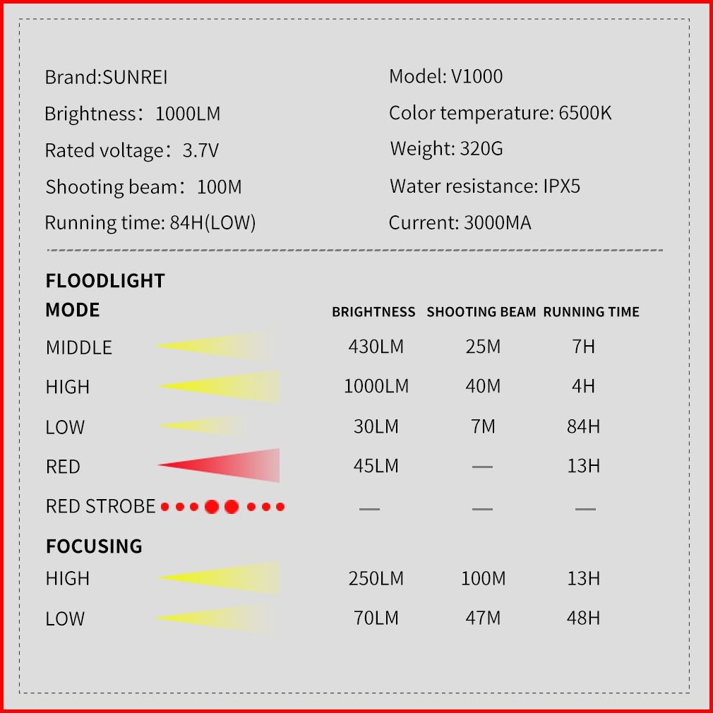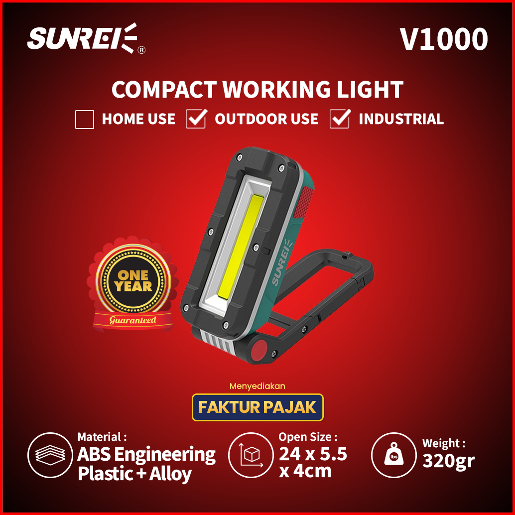 Senter Emergency Lampu Cob Sunrei V1000 1000 Lumens Ipx5 Lamp Kerja Proyek