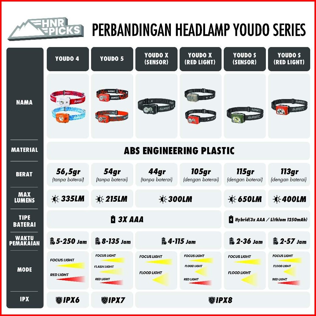 Sunrei Youdo 5 Headlamp Outdoor Ringan Dan Terang