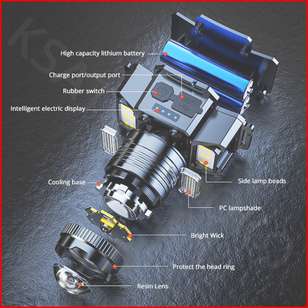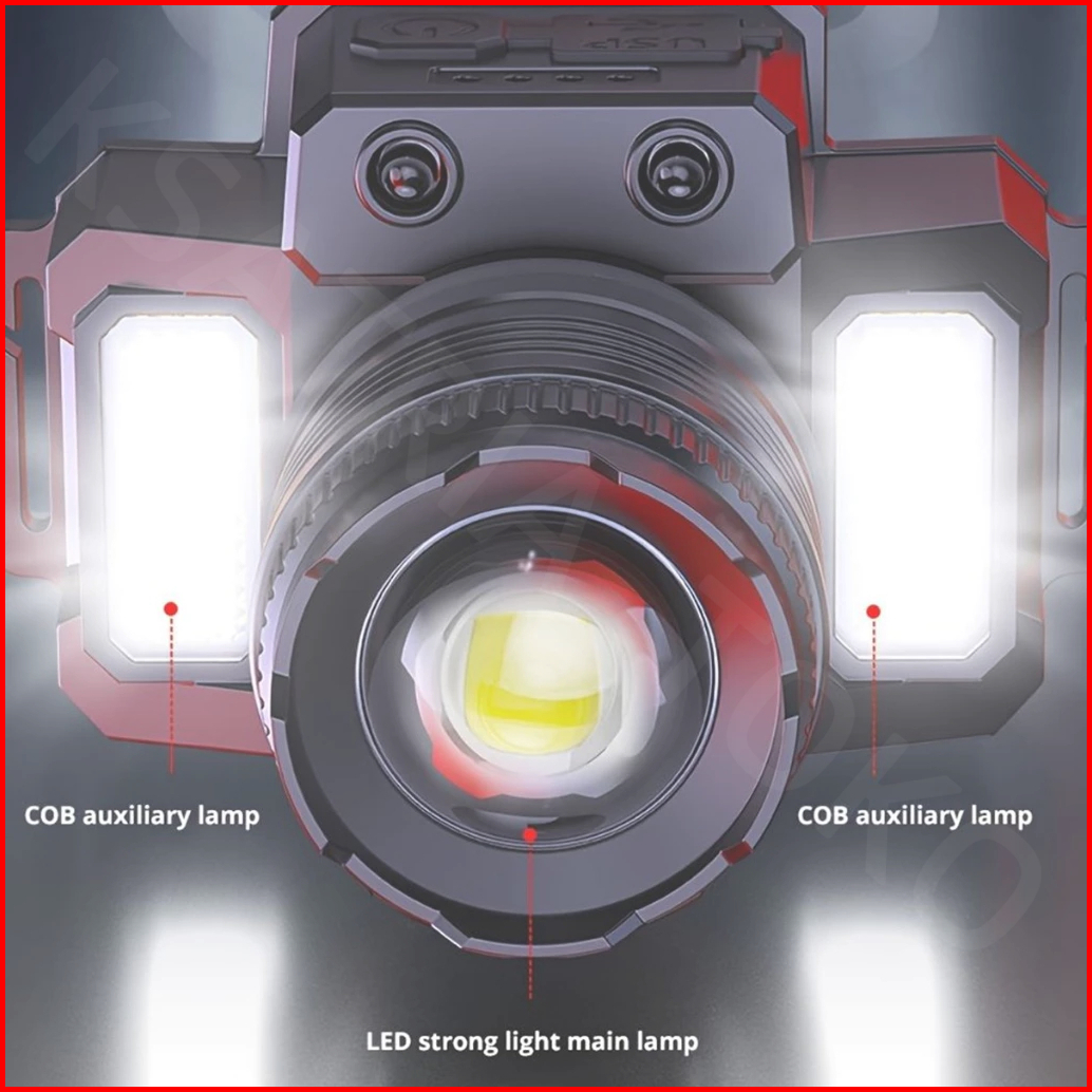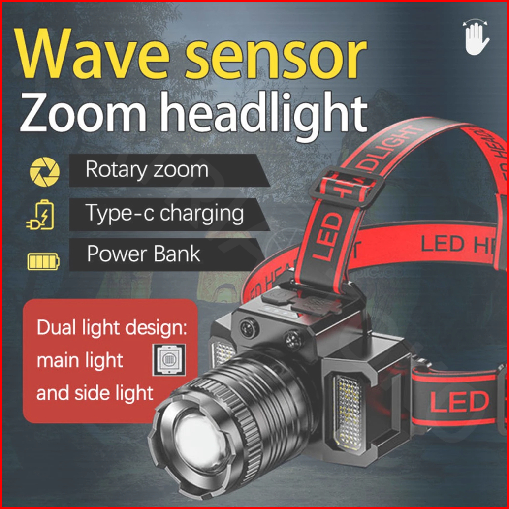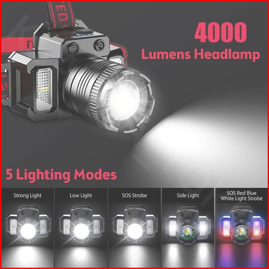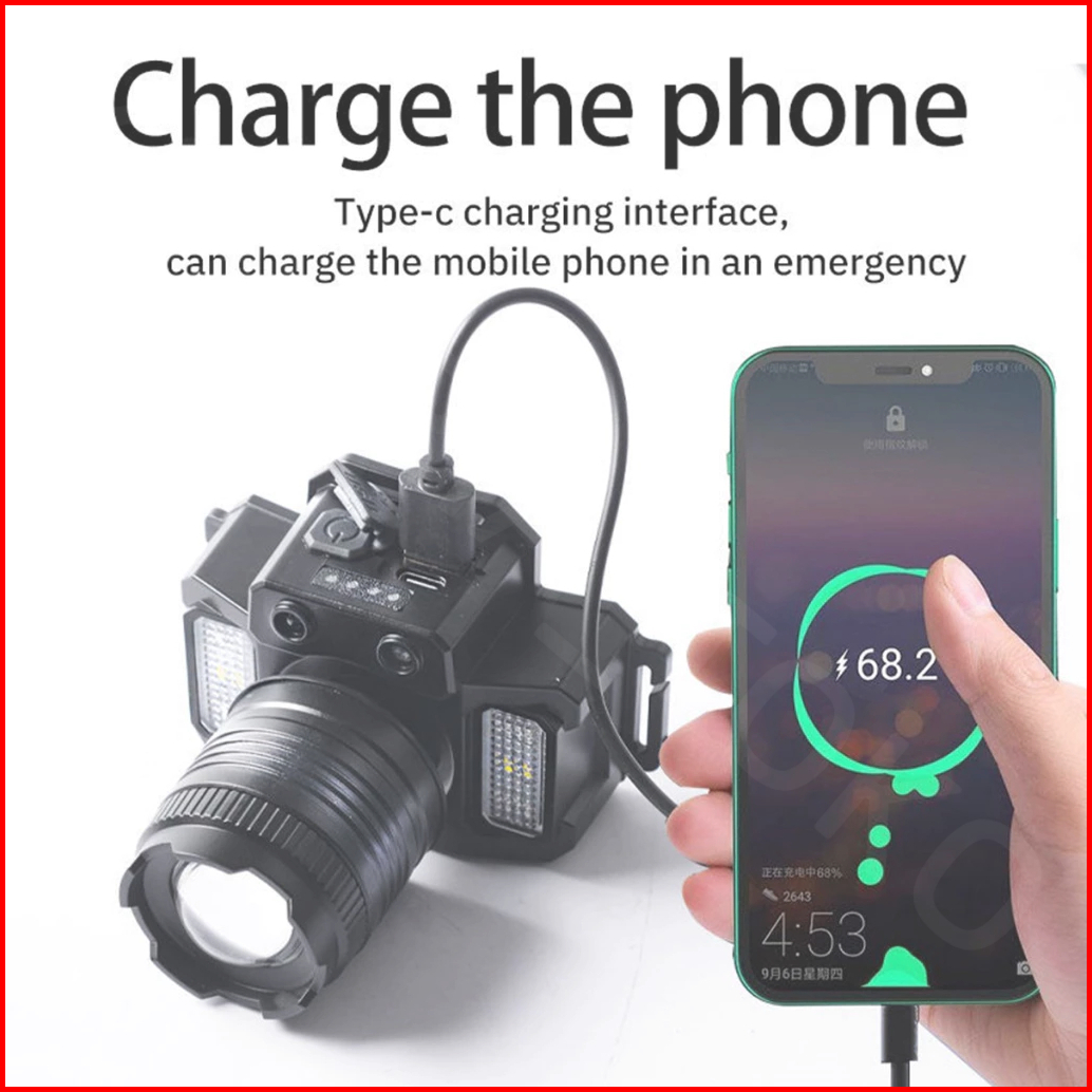 Lampu Kepala Led Tahan Air Headlamp F-t51 Induksi Sensor Gerak Zoom Rotating Super Terang 5000 Lumen Usb Charging Senter