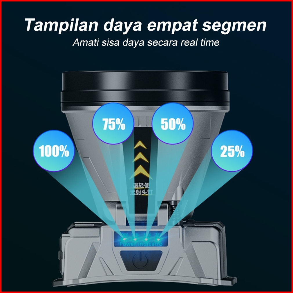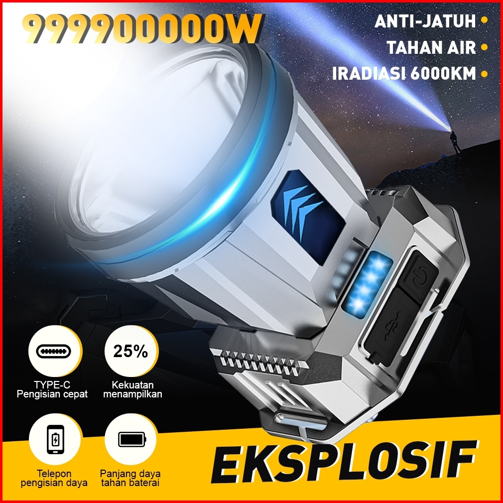 1000w Senter Tahan Air Led Super Terang Luar Ruangan Yang Dapat Diisi Ulang Usb Senter Kepala Senter Berkemah