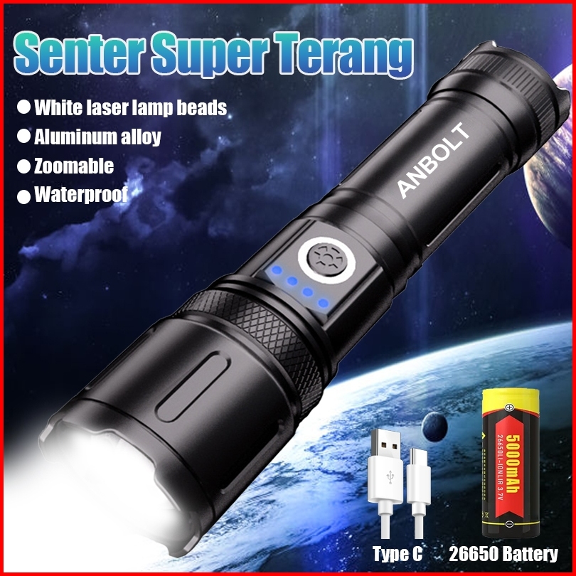 Ready Stock Lampu Senter Kecil Led Super Terang Jarak Jauh Senter Tahan Air Usb C Rechargeable Zoom Flashlight With 2665