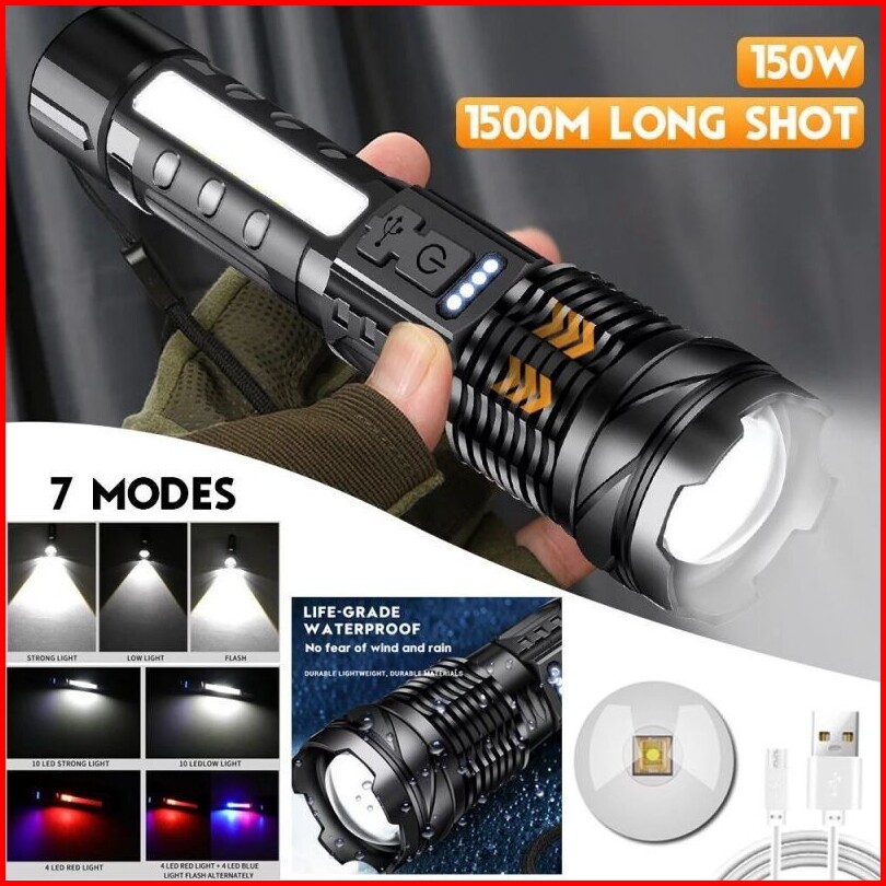 Senter Swat Police Terbaik Senter Led A76 Jarak Jauh 7 Mode Cahaya Senter Cas Usb