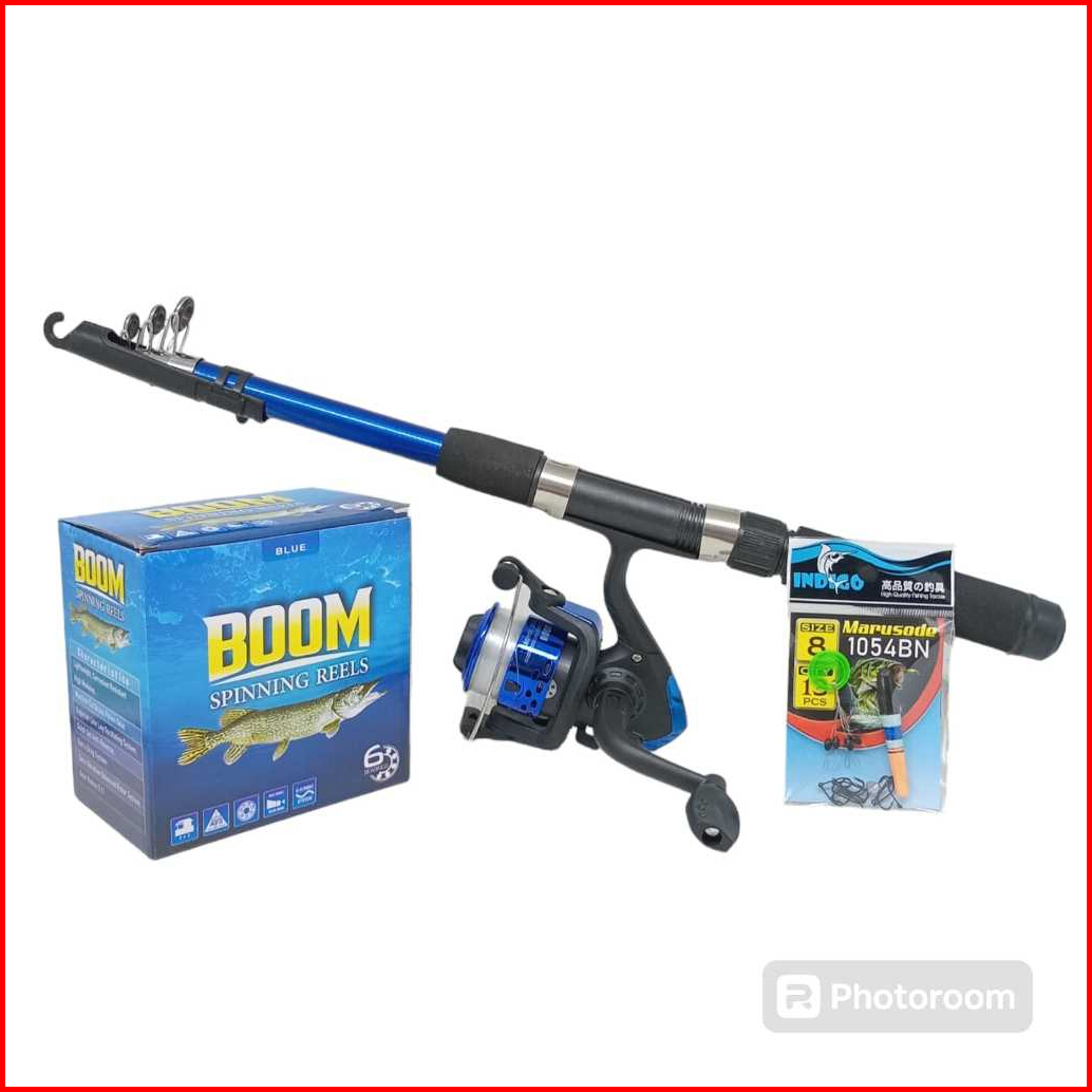 Set Pancing Joran Antena 150cm Reel 200 Audrey Boom Atom Spool Plastik Free Senar Siap Pakai