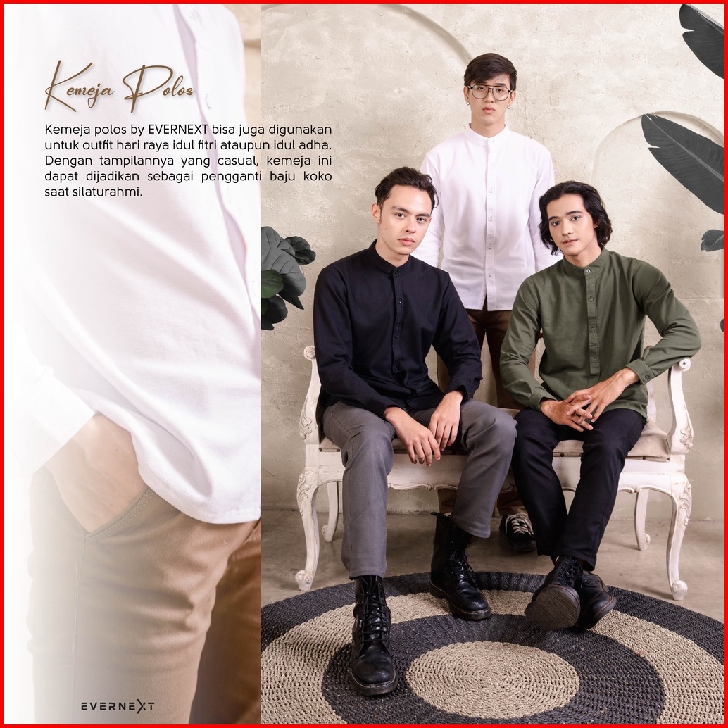 Evernext - Kemeja Polos Pria Baju Kemeja Koko Pria Kemeja Lengan Panjang Pria Kemeja Casual Premium Pria Distro