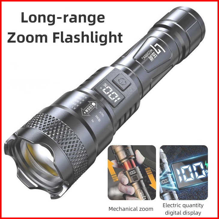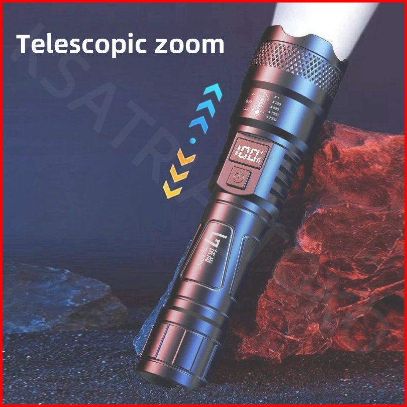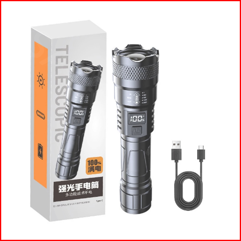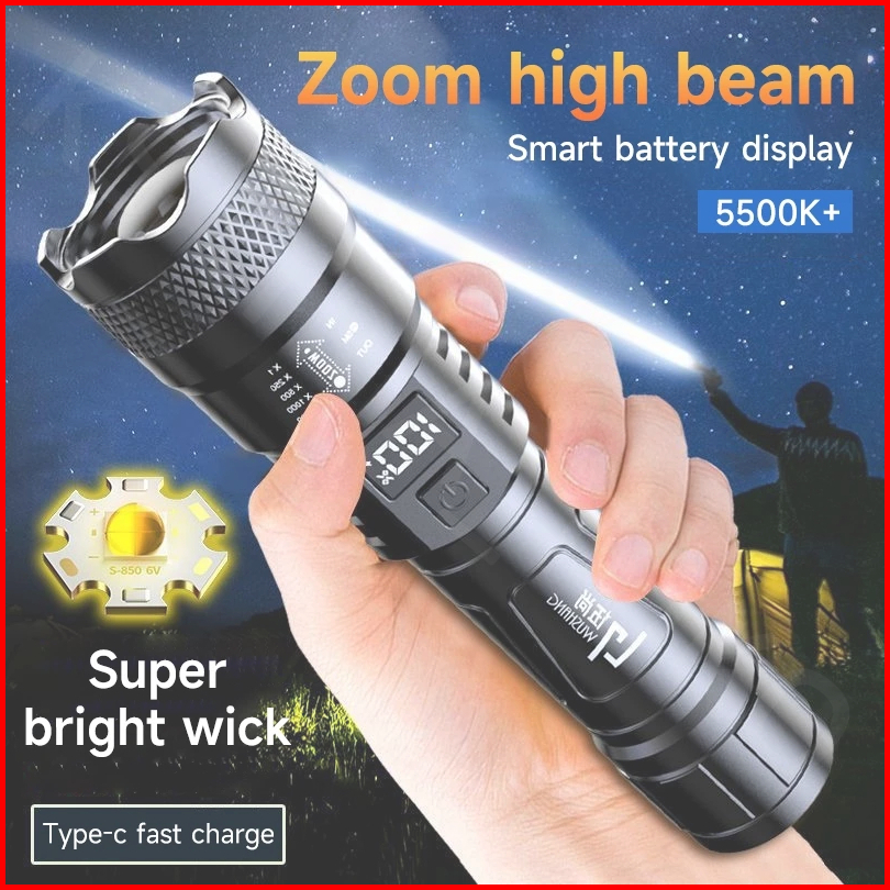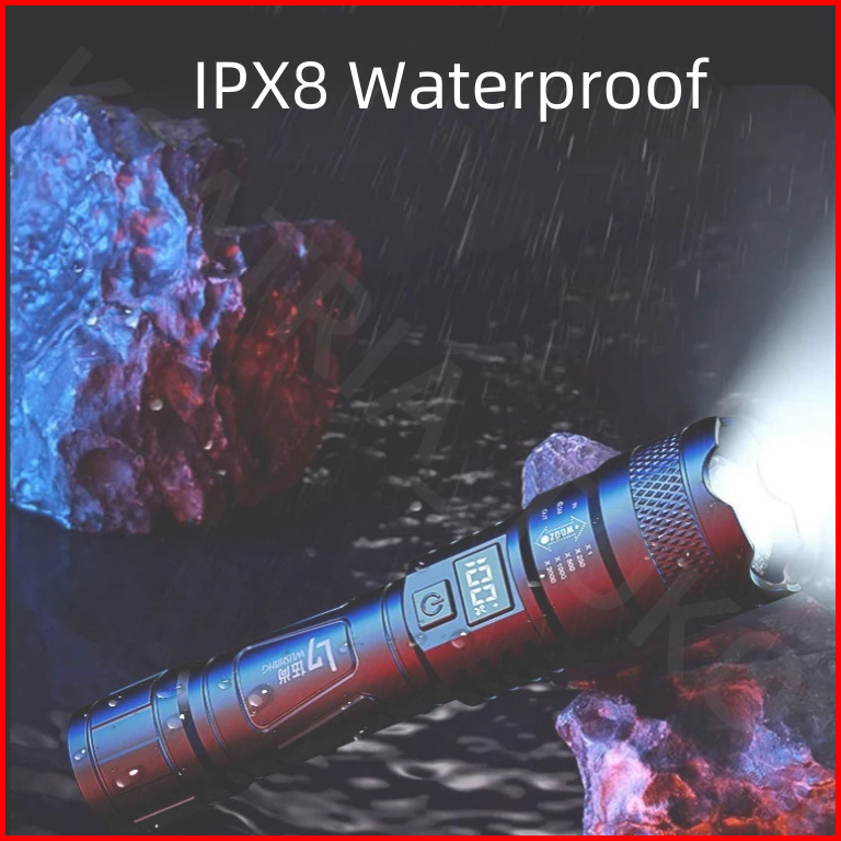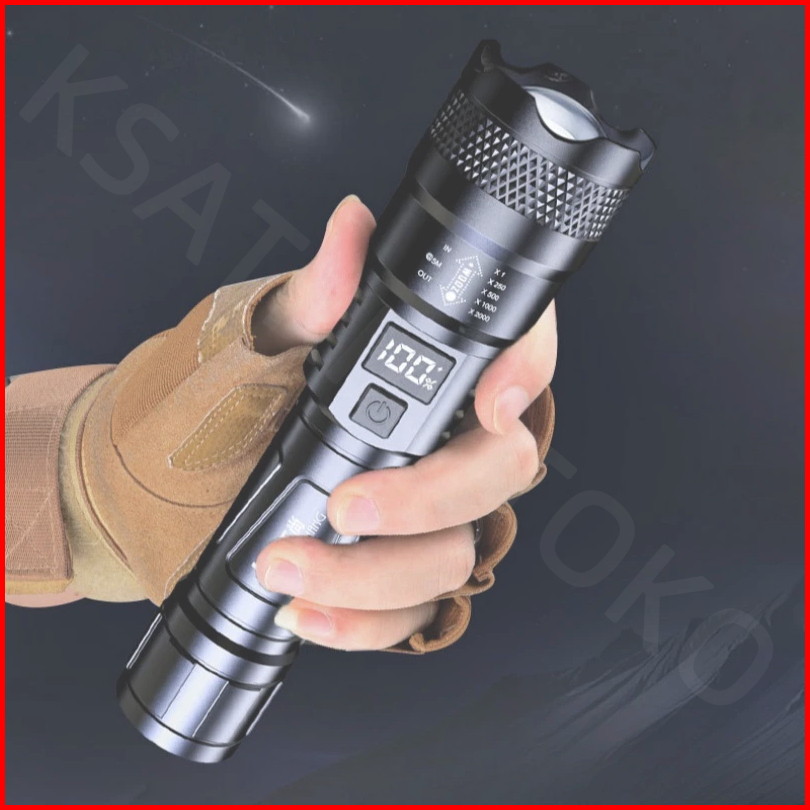300w Senter Cas Police Swat Senter Led Super Terang Tampilan Daya Digital Portabel Zoom Rechargeable Ipx8 Tahan Air 1865