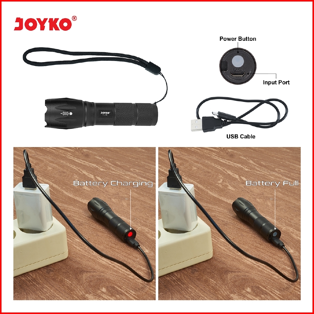 Rechargeable Led Flashlight Senter Led Isi Ulang Joyko Fl-88