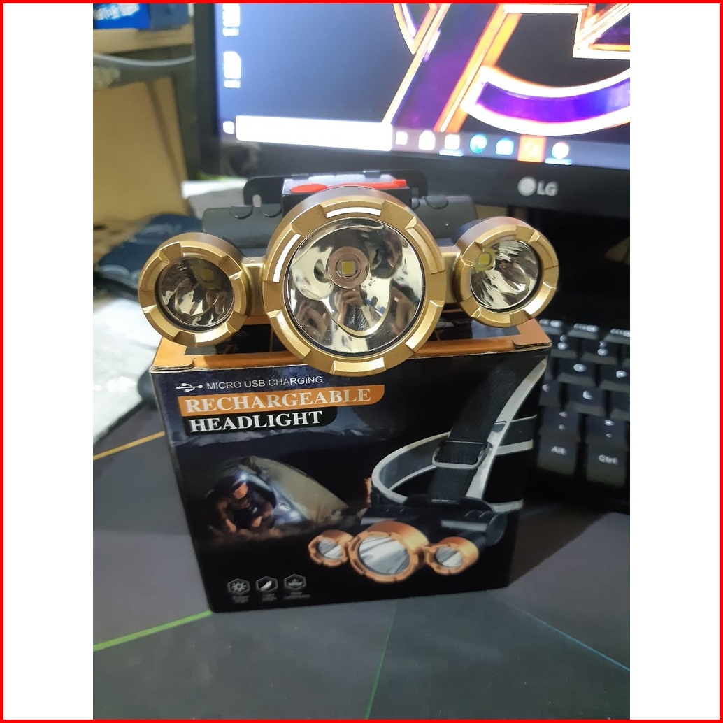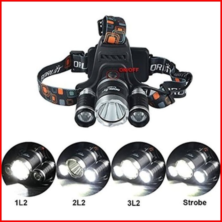 Senter Kepala Led Jarak Jauh Anti Air Senter Led Super Terang Senter Headlamp 3 Led Cree Xm-l 3t6 15000 Lumens Waterprof
