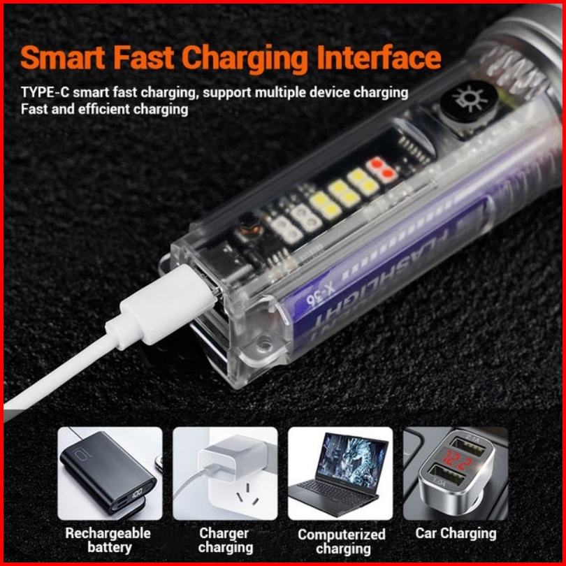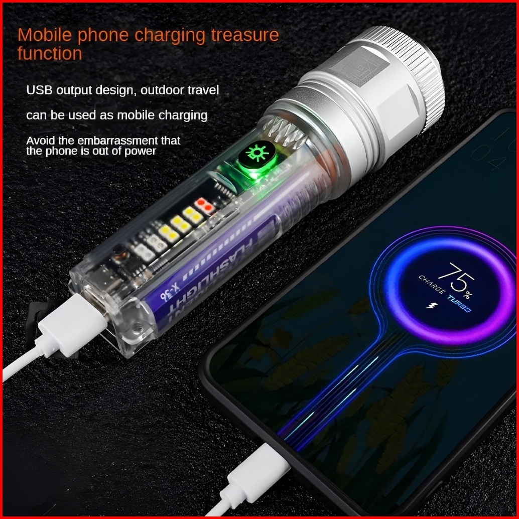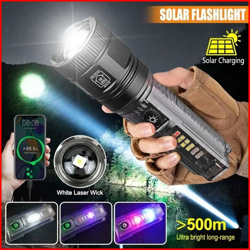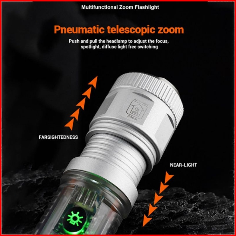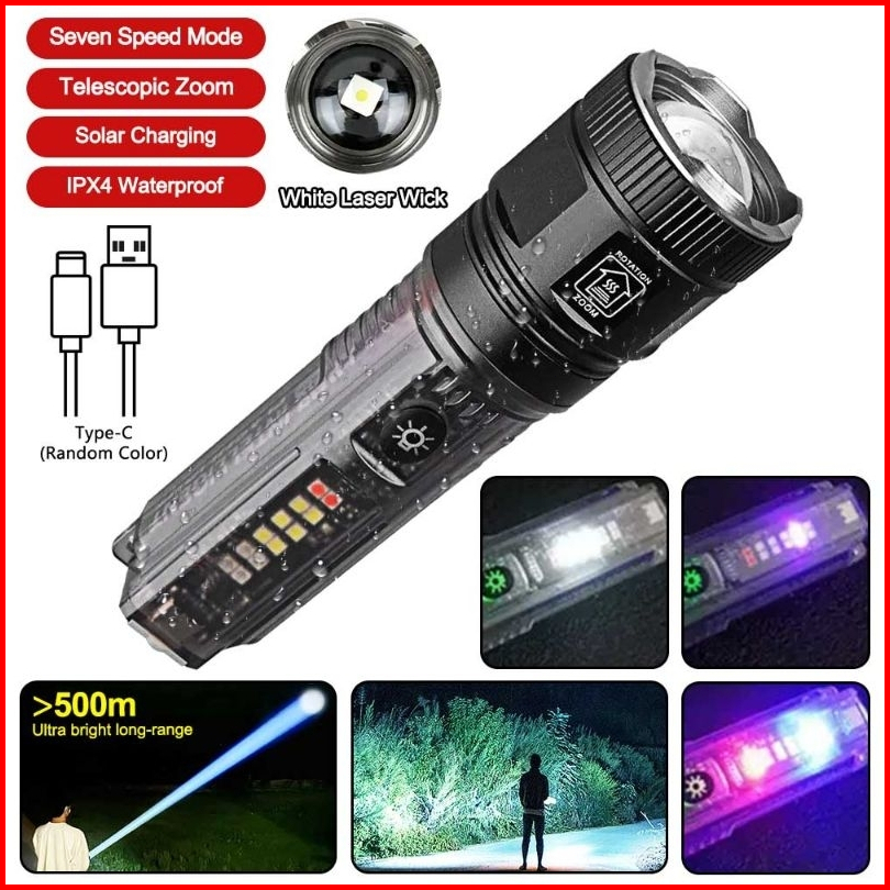 7 Modes Senter Led Super Terang 9000 Lumens Zoomable Flashlight Type-c Rechargeable Led Senter Senter X36 Led Laser Zoom