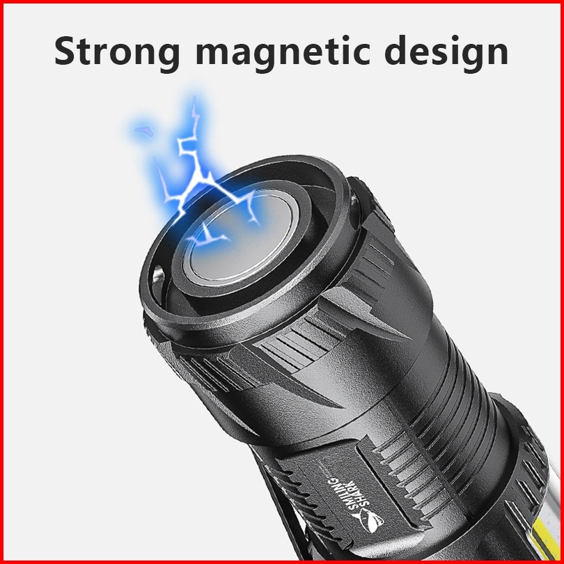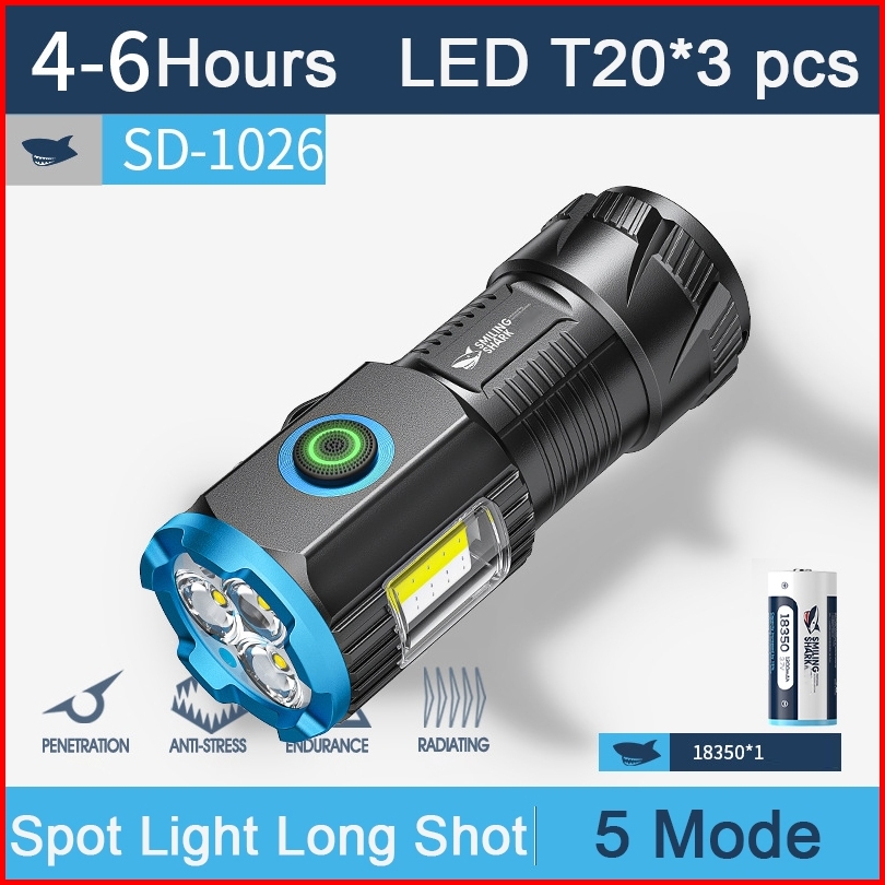 Senter Smiling Shark Sd1026 Smilingshark Sd 1026 Senter Mini 3x Led T20 Keychain Magnet Type-c Rechargeable Waterproof
