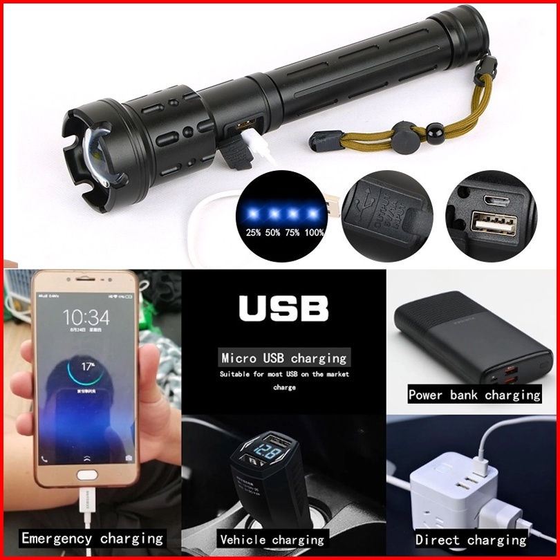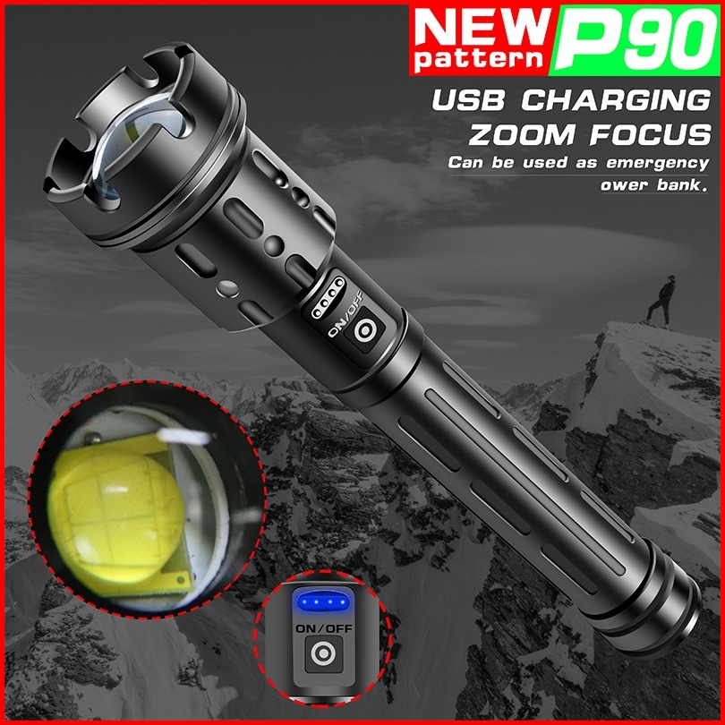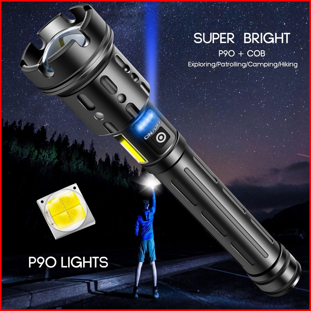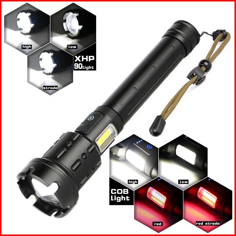 Senter Led Xhp90 Xhp160 Super Terang 3000 Lumens Tahan Air Zoom Ditarik Lampu Pencahayaan Luar Ruangan Flashlight