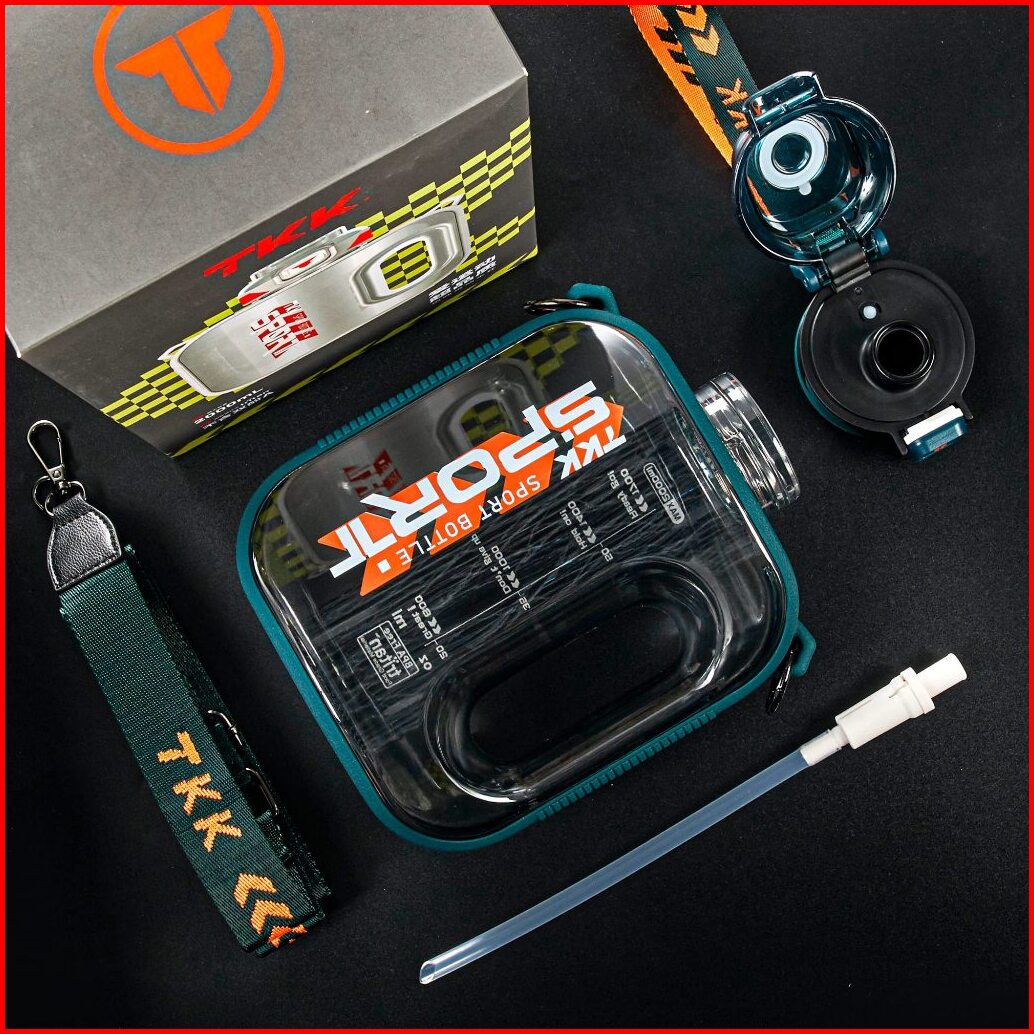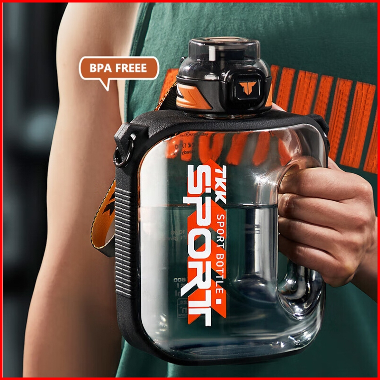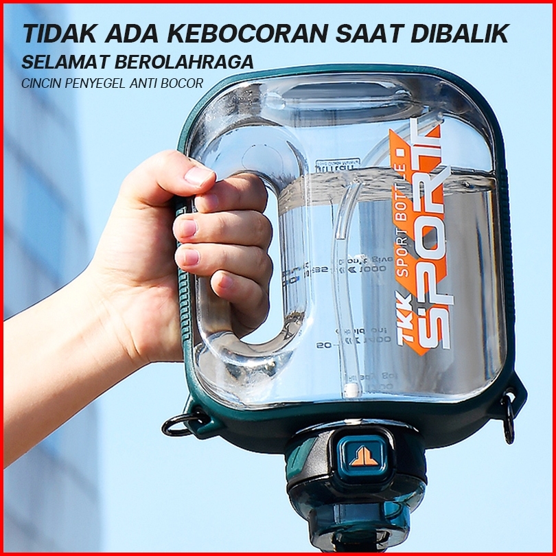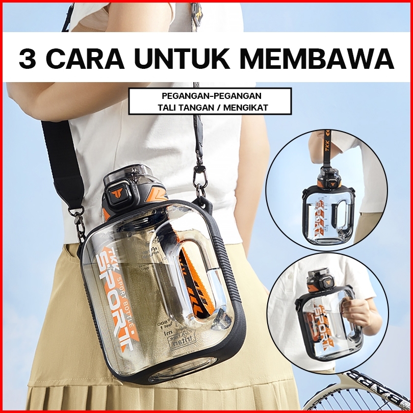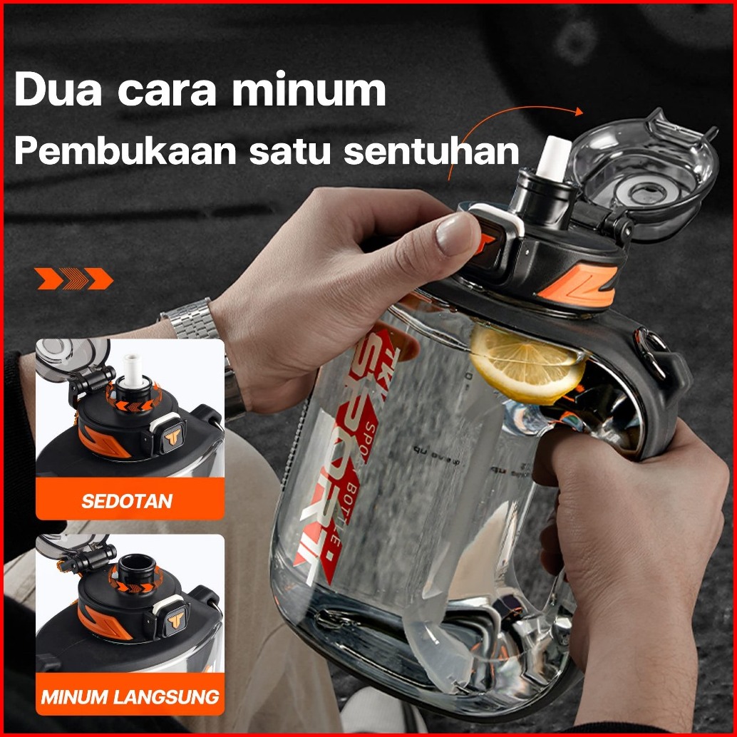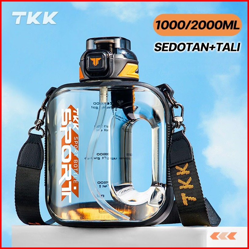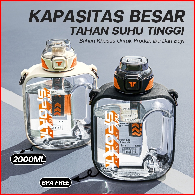 Tkk Botol Minum Jumbo 2 Liter Bpa Free Tritan Ada Sedotan Dan Tali Botol Air Datar Anti Pecah
