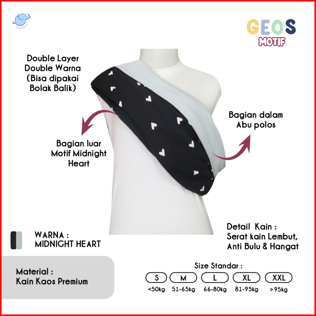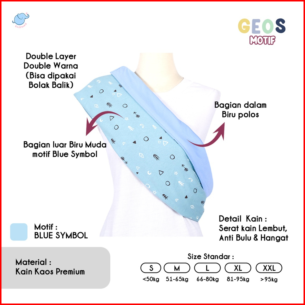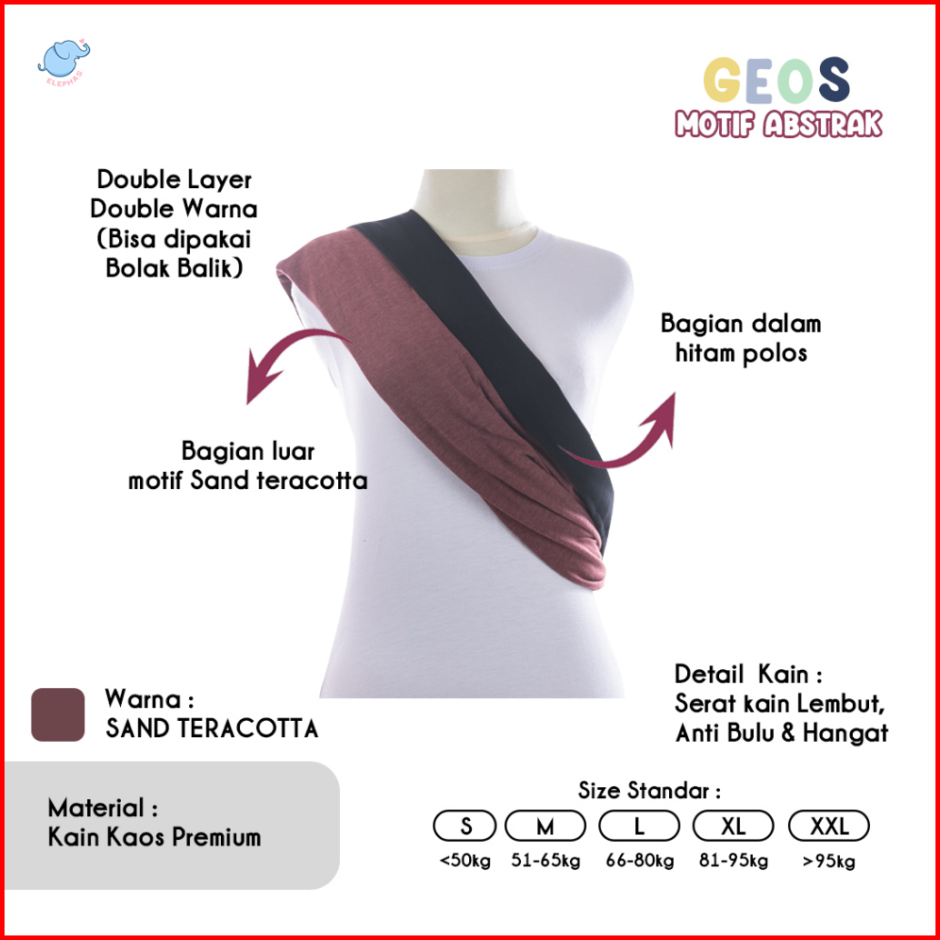 Elephas Geos Motif Series 1 - Gendongan Bayi Geos Premium Gendongan Kaos Simple Double Kain Bolak Balik Bergaransi Bisa