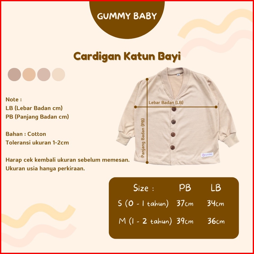 Gummy Baby Cardigan Katun Bayi Kardigan Anak Bayi 0-2 Tahun Outer Cardigan Anak Katun