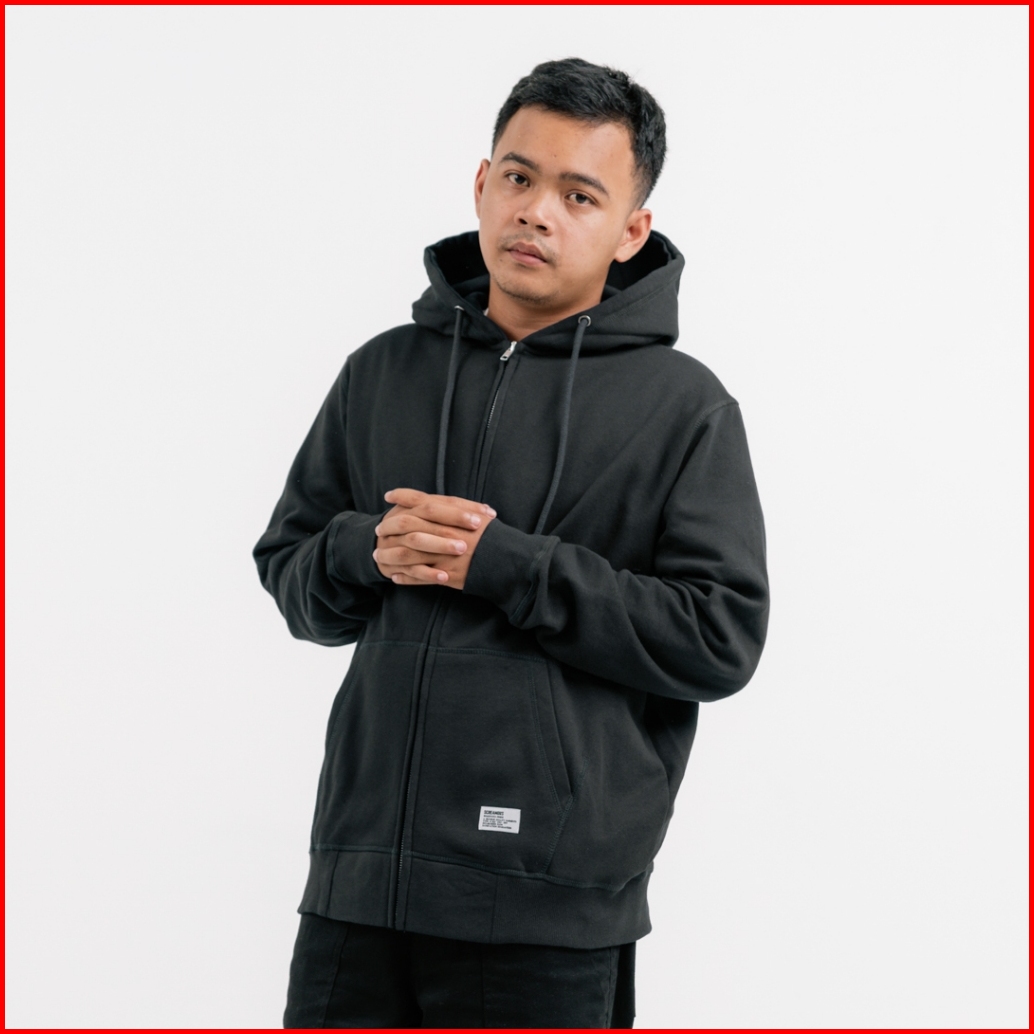 Screamous Sweater Pria Basic Pullover Zipper Hoodie Sean Black
