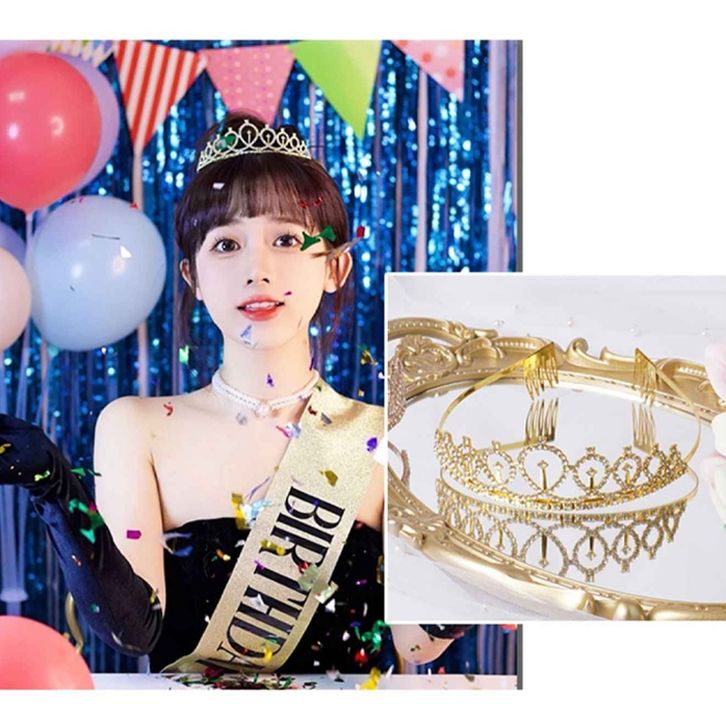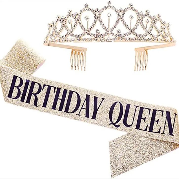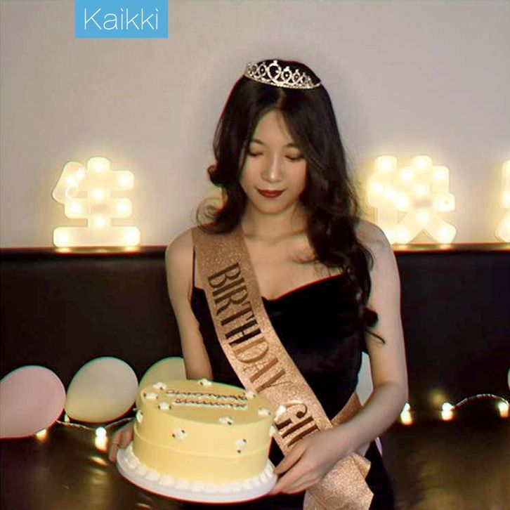 Mahkota Ulang Tahun dan Sash Birthday Hair Bands selempang Happy Birthday Aksesori Ulang Tahun