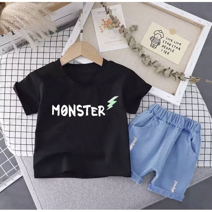 SETELAN BAJU DAN CELANA ANAK PANDA KERAH DENIM 1-5 TAHUN FREE ONGKIR