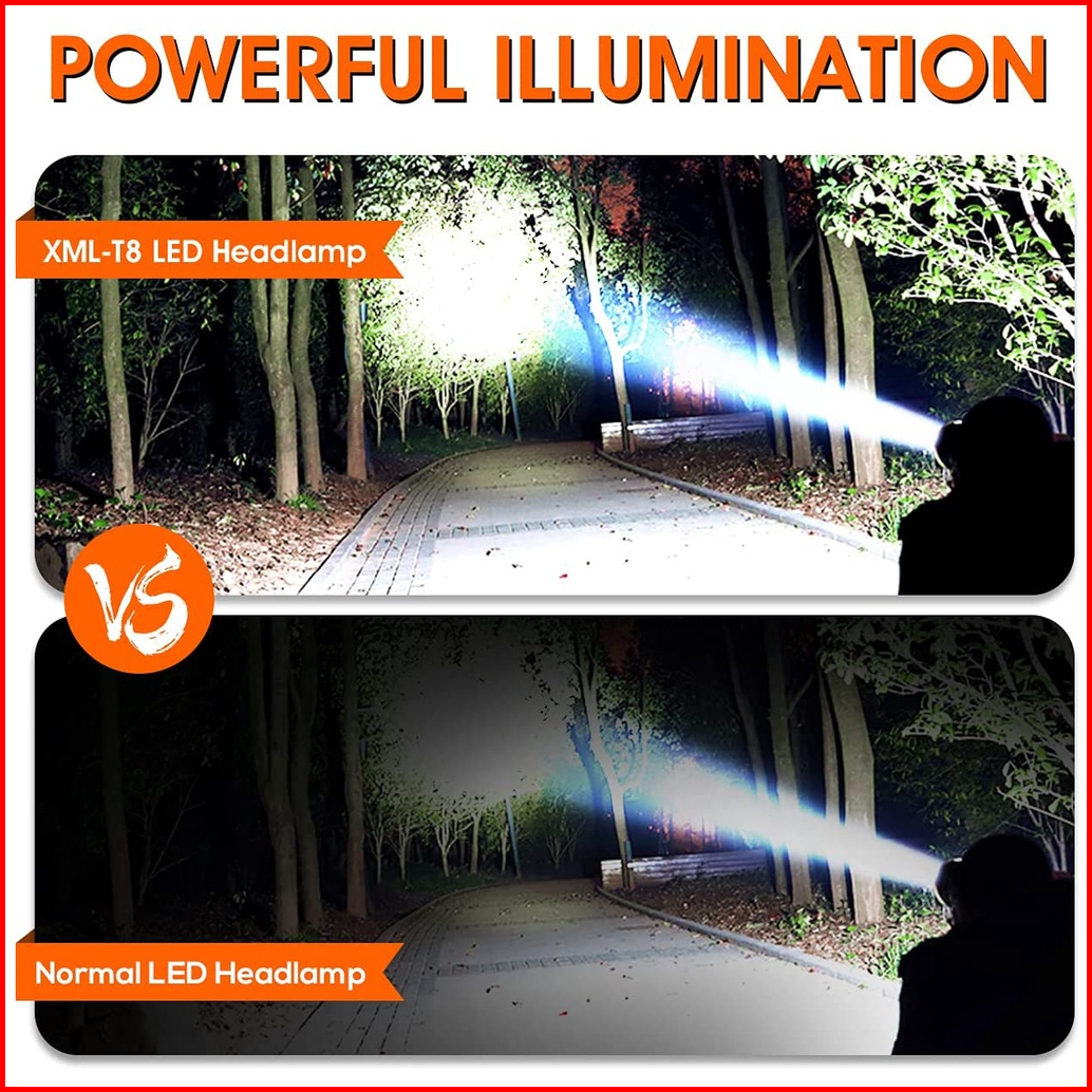 Senter Kepala Led Sorot Super Terang Jarak Jauh Headlamp T8 Zoom Led Outdoor Waterproof