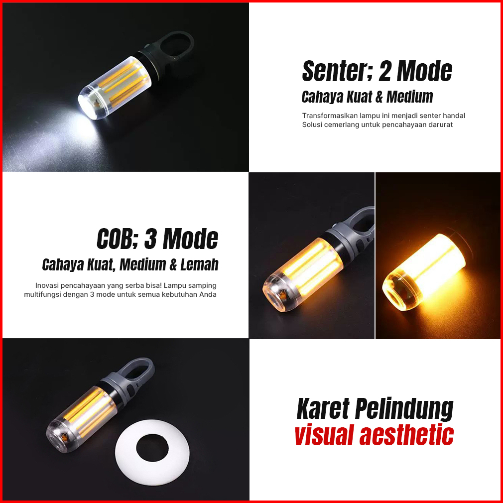 Lampu Kemah Led Mini Multifungsi Gantungan Kunci Cahaya Darurat Lampu Suasana Berkemah Putih Hangat Yy-17
