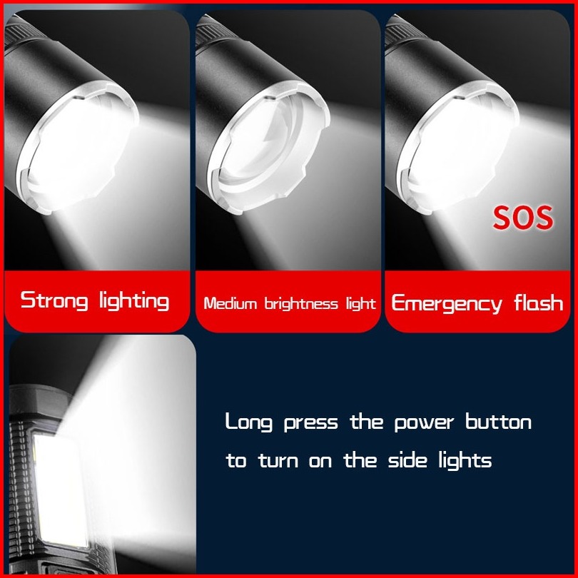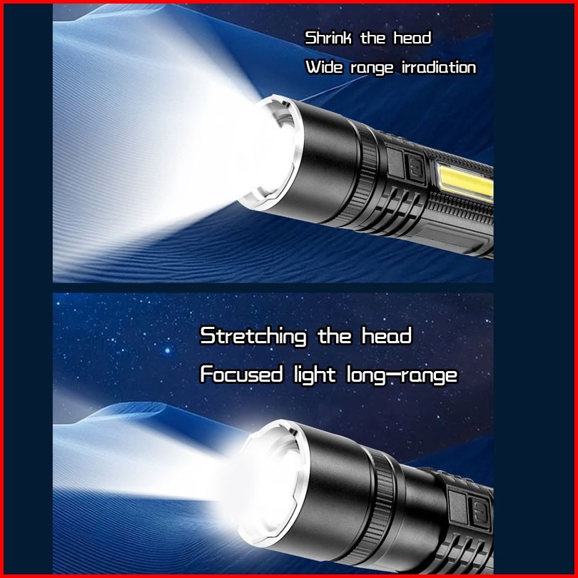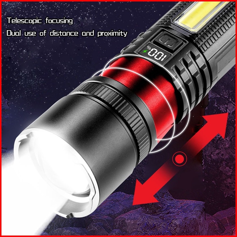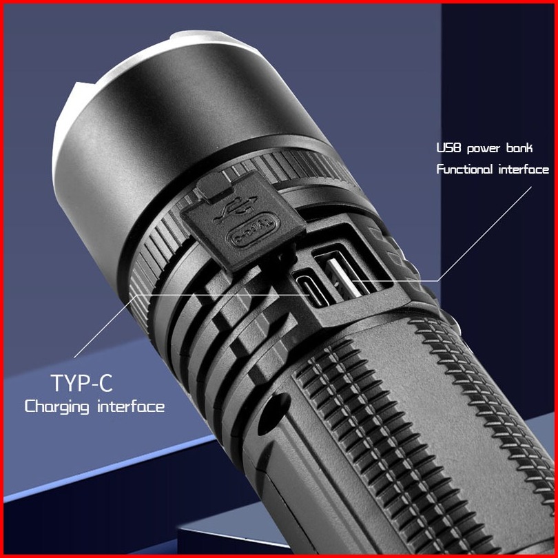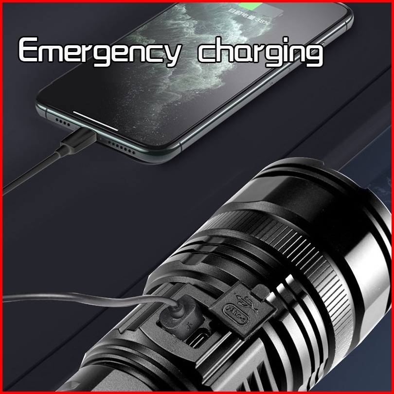 Senter Kuat Led Super Terang Senter Luar Ruangan Usb Isi Ulang Baterai Senter Daya Tinggi Penerangan Jarak Jauh Penerang