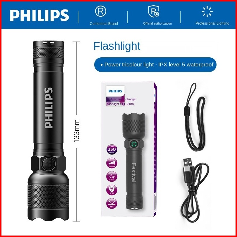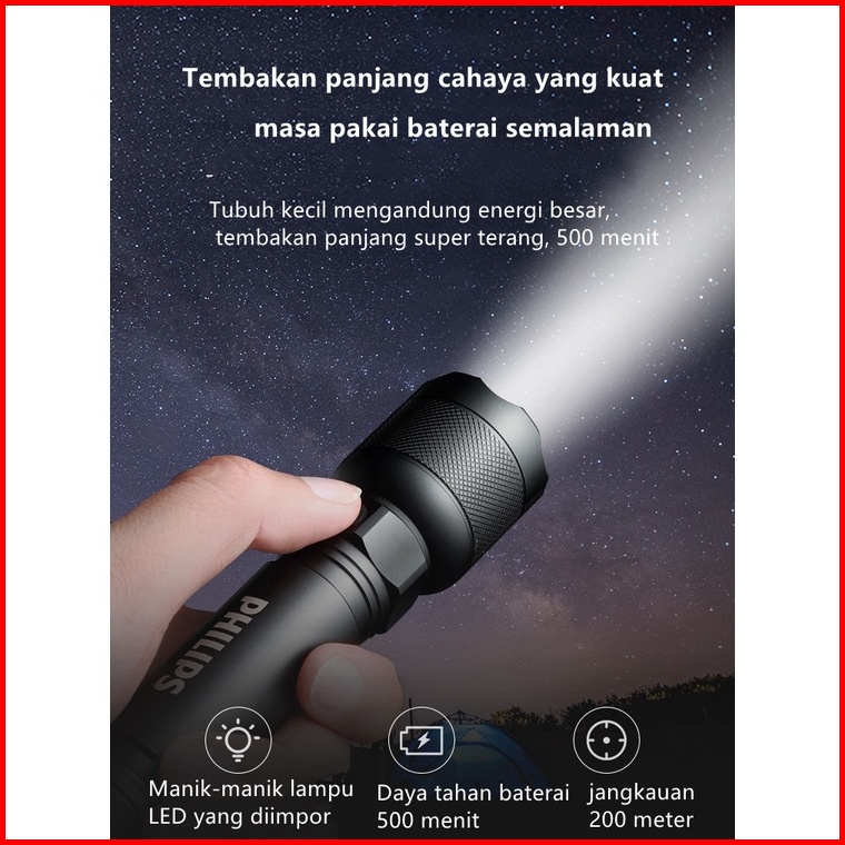 Philips Lampu Senter Led Sfl2188 Senter Police Swat Flashlight Super Terang Senter Gunung Camping