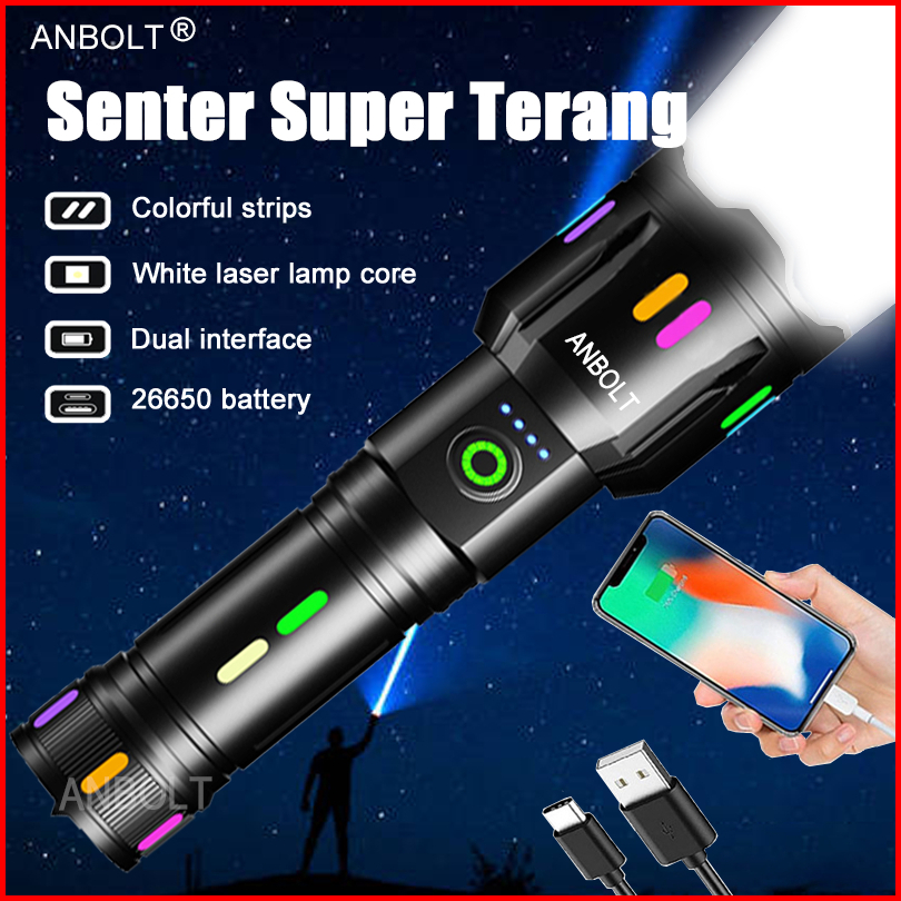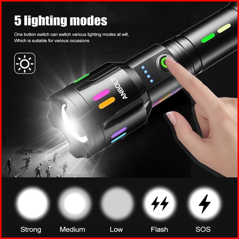 Anbolt A18 A18 Pro Senter Led Super Terang 100000 Lumen 5 Mode Cahaya Senter Perumahan Tahan Lama Senter Zoom Dengan Bat