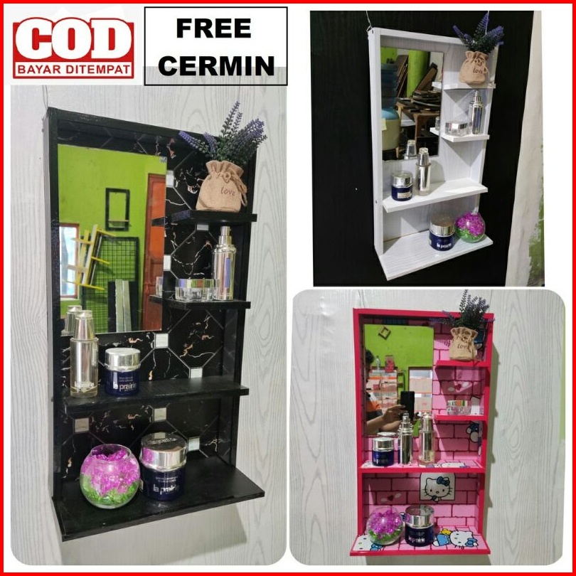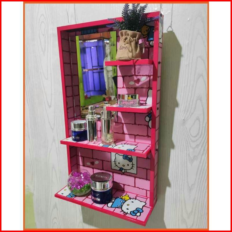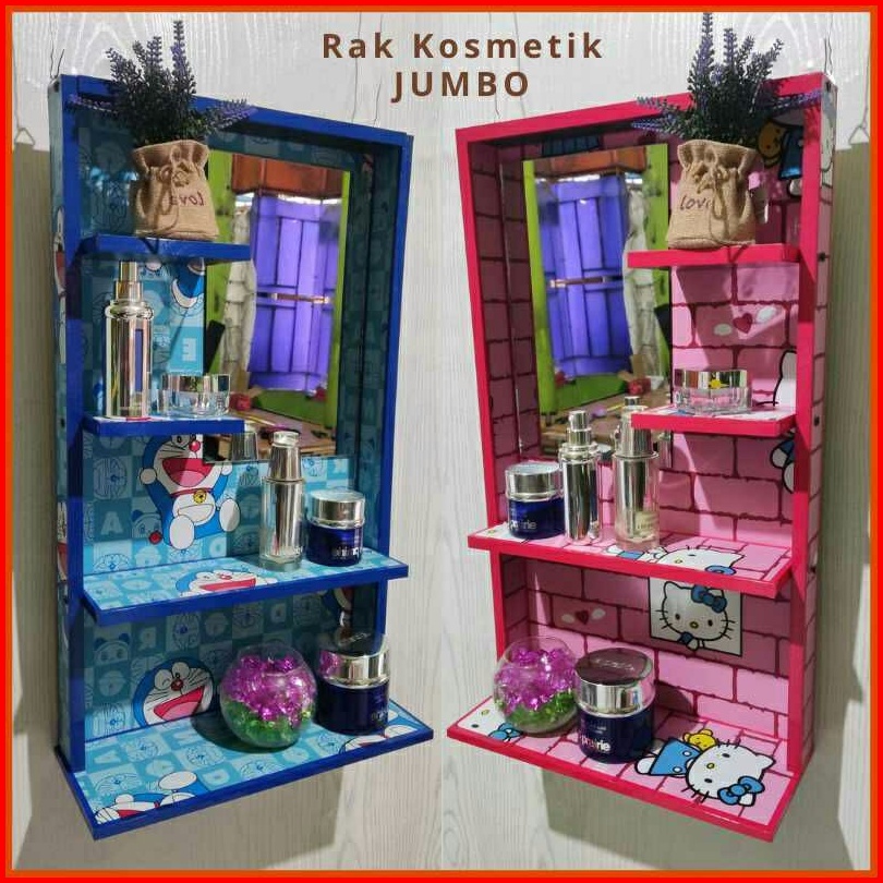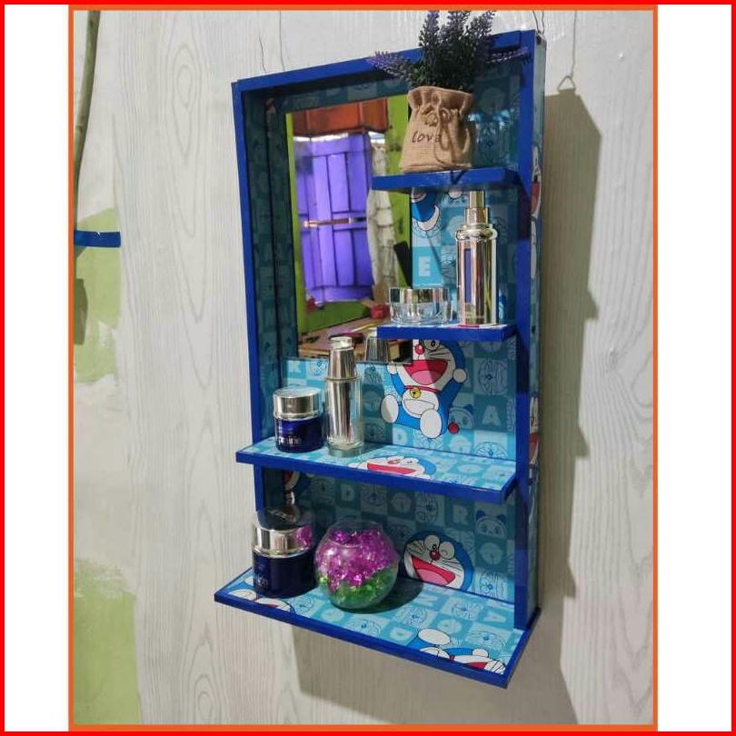 Rak Kosmetik Gantung Jumbo - Rak Kosmetik Cermin Kaca Make Up Skincare Hiasan Dinding Kayu Kokoh Dan Kuat Motif Doraemon