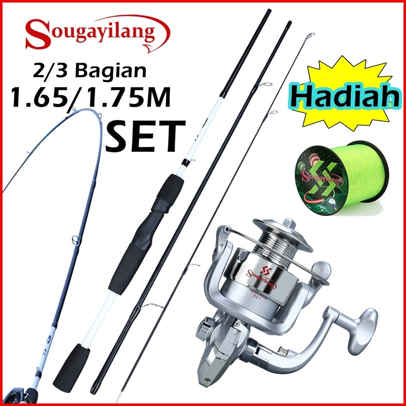 Sougayilang Pancingan Set Lengkap 1.65m 1.98m 2 4 Bagian Joran Pancing 1 Set Reel Pancing Alat Pancing Reel Bc
