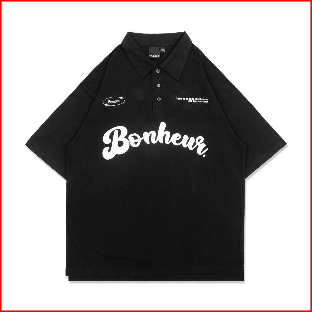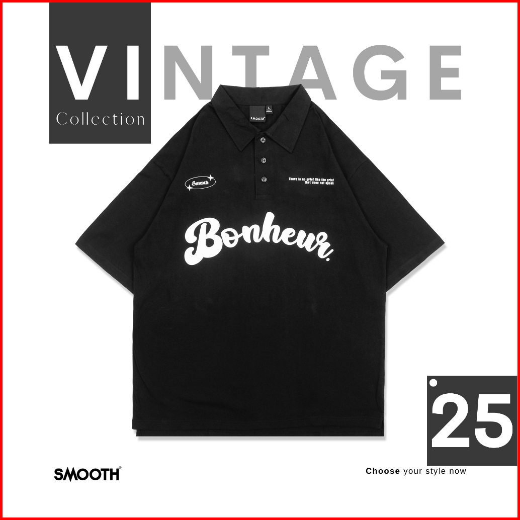 Smooth Basic Vintage Polo Oversized Shirt - Bonheur Black