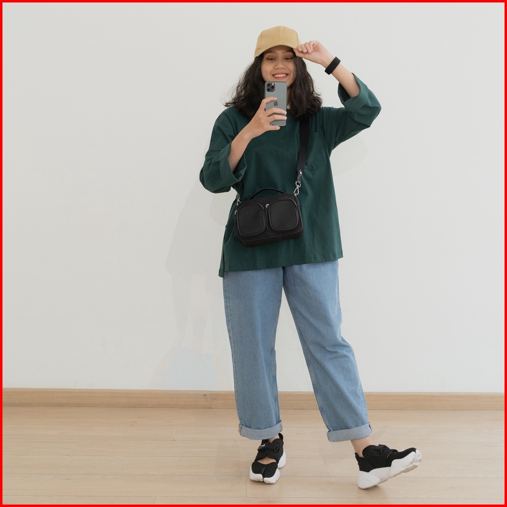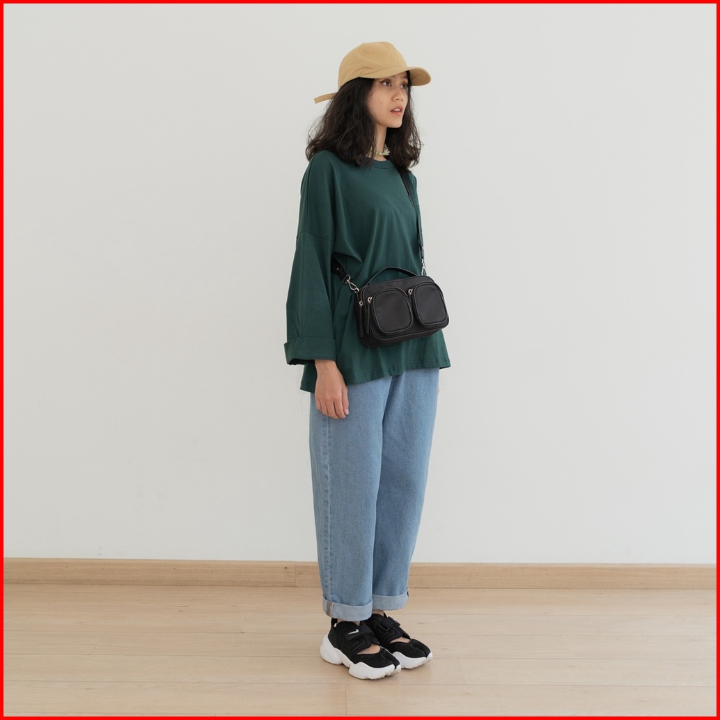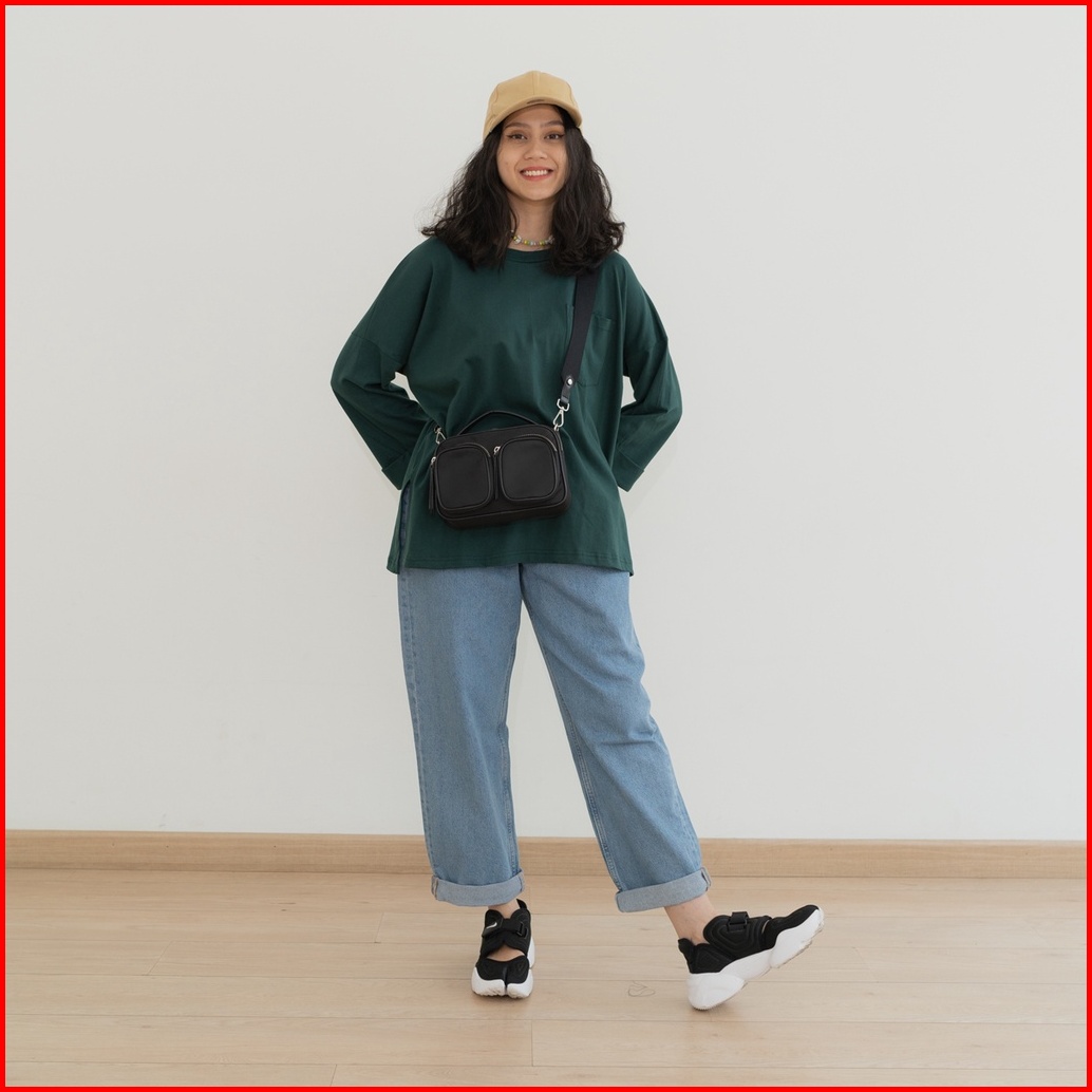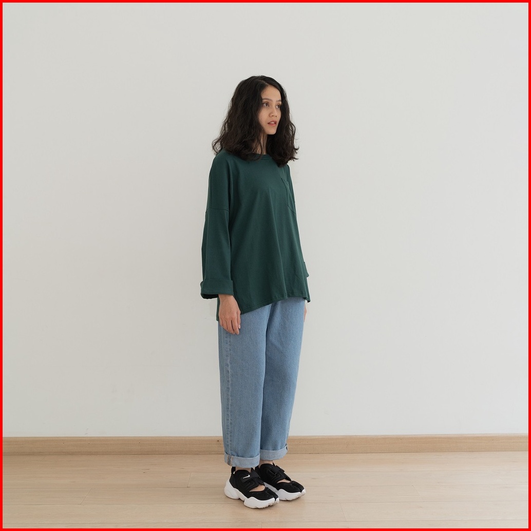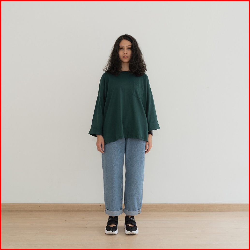 Anssy - Rumi Oversize Pocket Tshirt Evergreen - Kaos Lengan Panjang Wanita