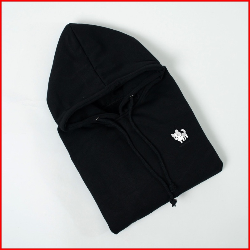Prayerfaith - Hoodie Polos Nekoneko Warna Black Unisex Pria Dan Wanita Bahan Fleecee Tebal Lembut Nyaman Di Pakai