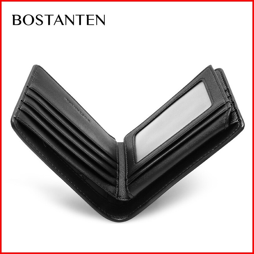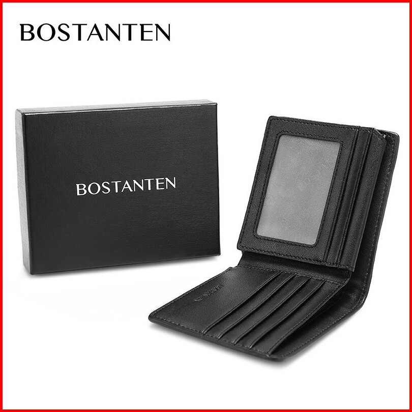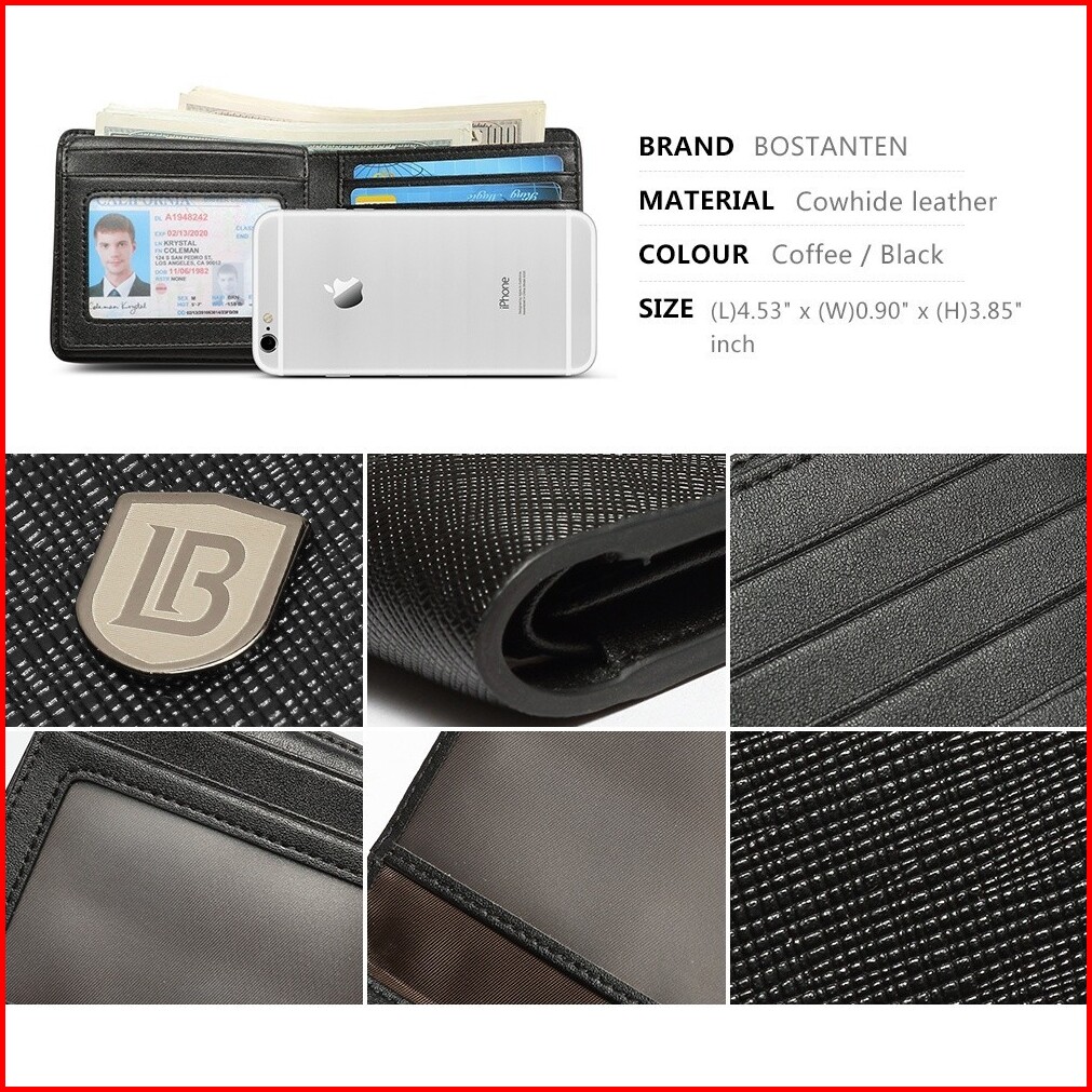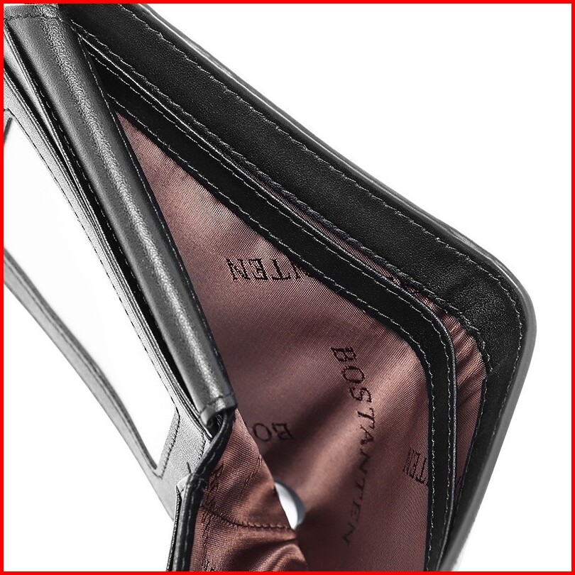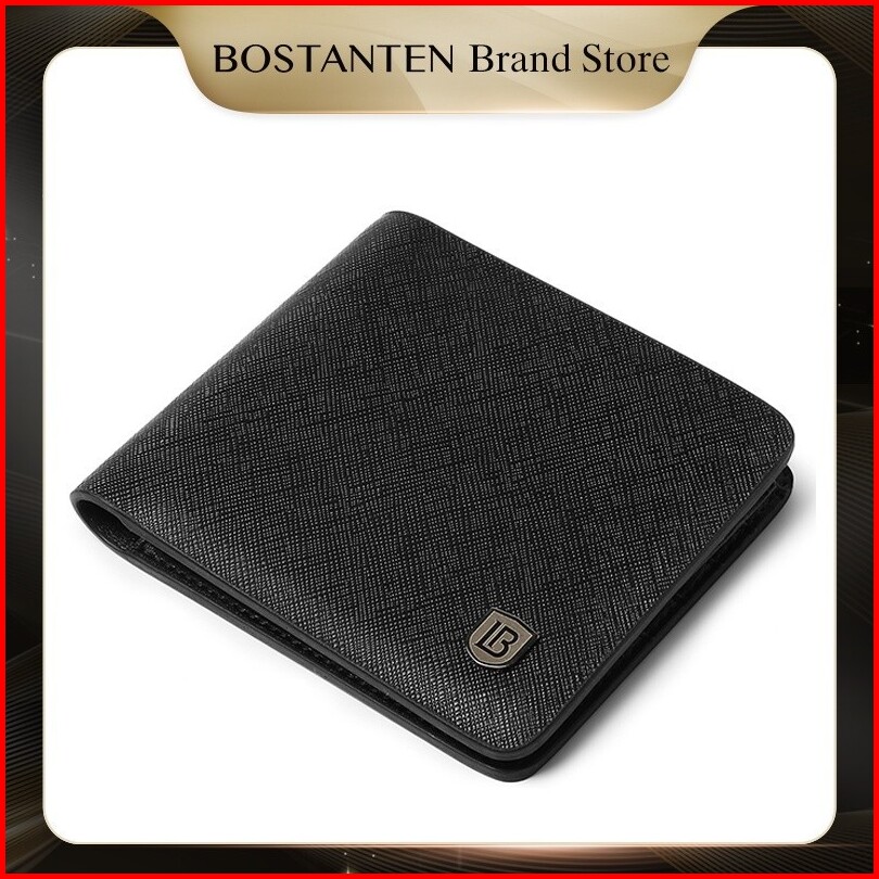 Bostanten Dompet Lipat Pria Bahan Kulit Sapi Asli Model Tekstur Coklat Hitam