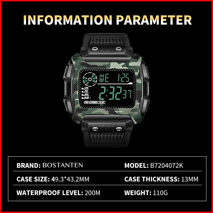 Bostanten Jam Tangan Pria Elektronik Multifungsi 1022k Tahan Air