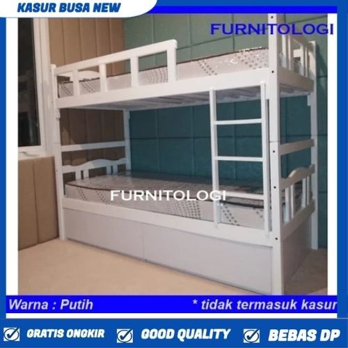Ranjang Susun 2 Tingkat dengan Laci Kolong Serbaguna White Bunkbed Ranjang Susun Putih KUALITAS TERBAIK